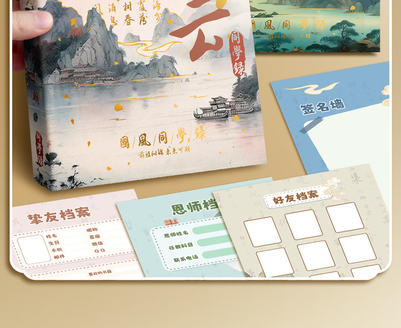 レトロな中国風のクラスメートは小学生の6年生の卒業成長の記念帳2025の新型の古風のページの本を記録します。