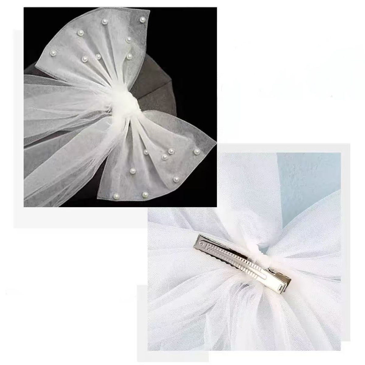 国境を越えた真珠の網糸蝶ネクタイの白いヘアピンの糸レトロでシンプルな結婚式のウェディングドレスの花嫁の髪飾り