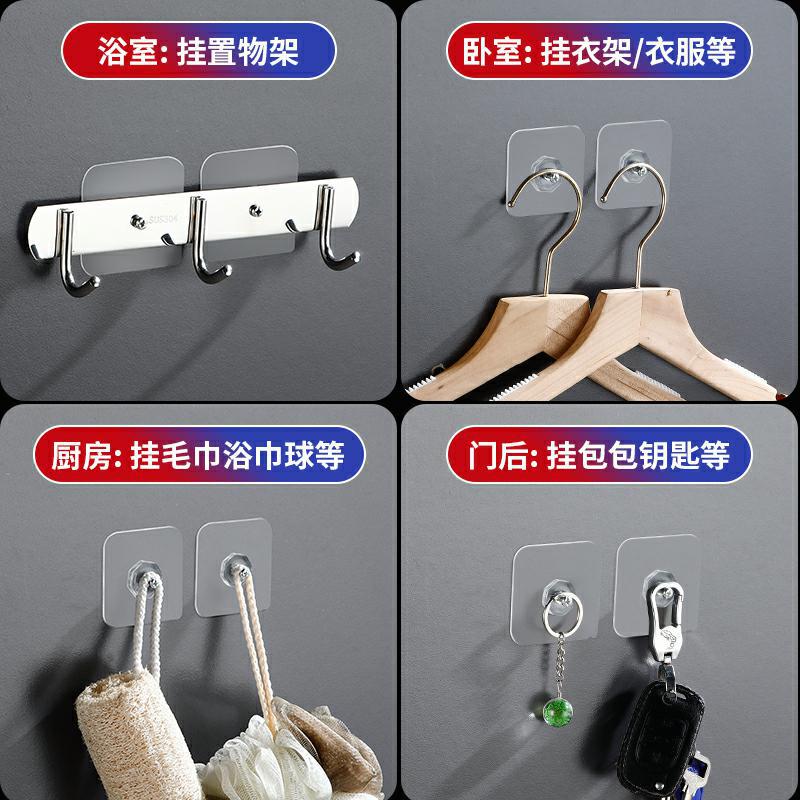 メーカーの穴なしの棚の粘着フックの新しいフラットバーのフックの台所の浴室の穴なしの壁掛けのインストール