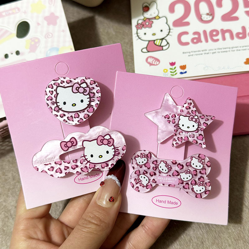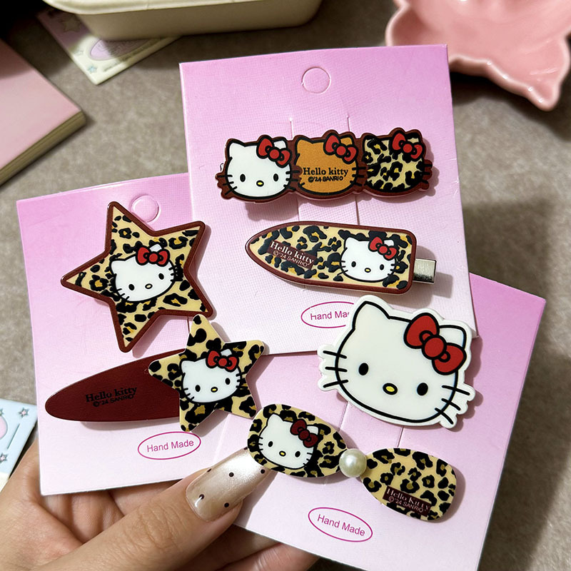 新しい猫ピンクヒョウ柄ヘアピン多用途愛五芒星骨カモノハシクリップかわいい漫画ヘアアクセサリー