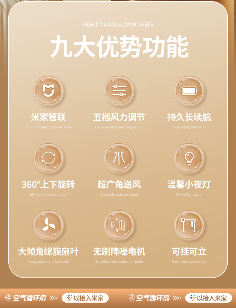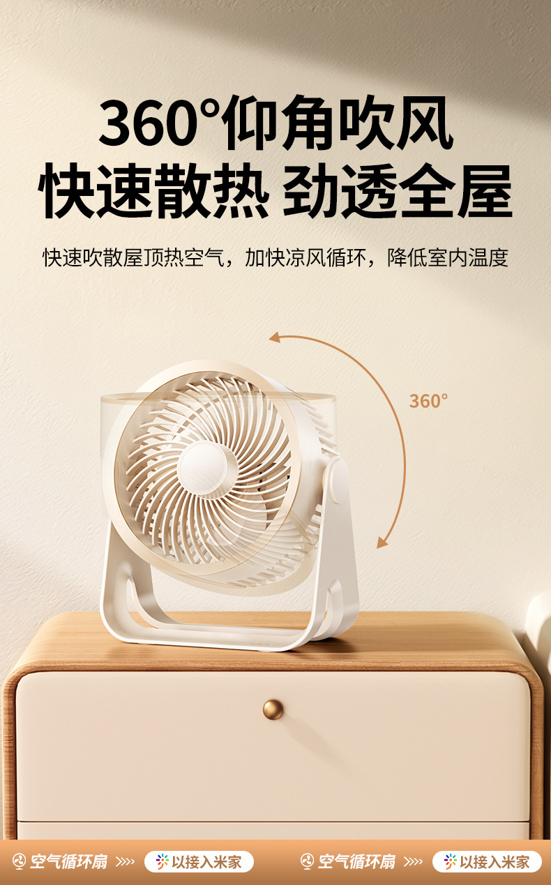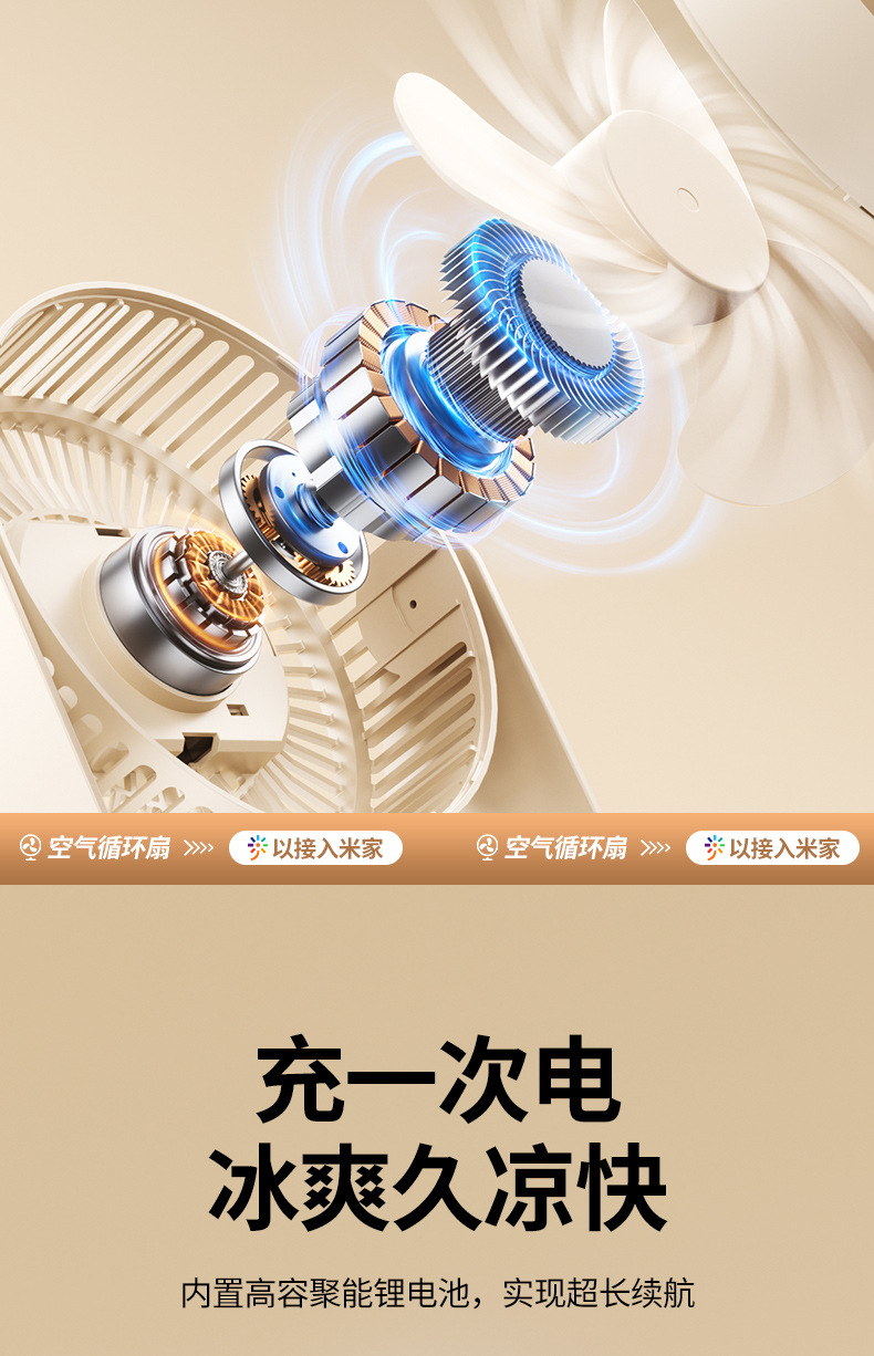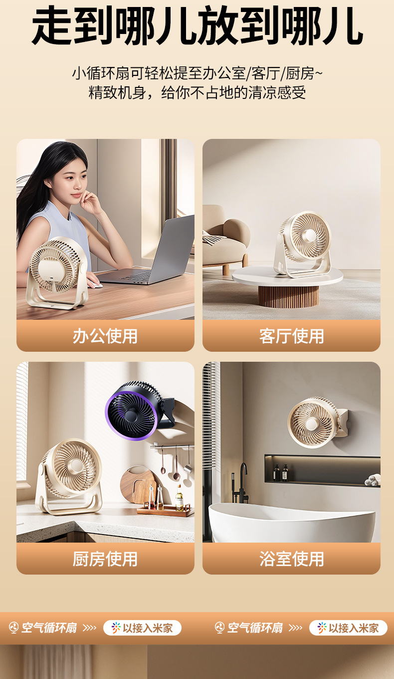新型米家APP空気循環ファンデスクトップ小型ファンUSB充電可能扇風機オフィステーブル学生寮