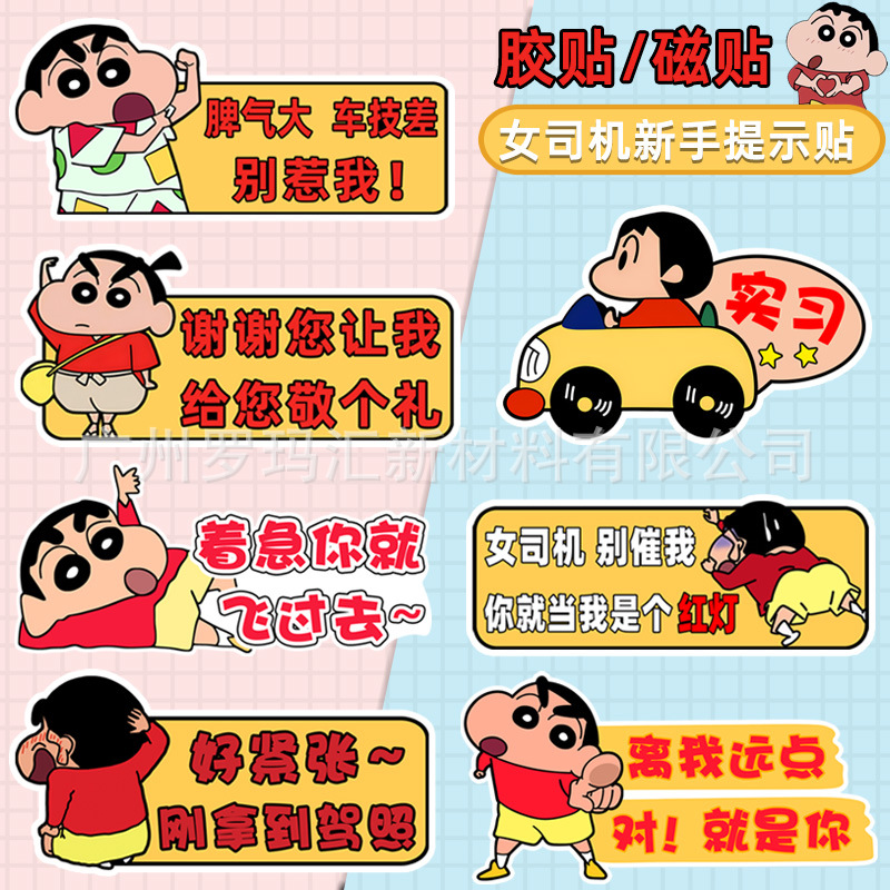 クレヨンしんちゃんの車のシール女性の運転手の初心者が出発します。