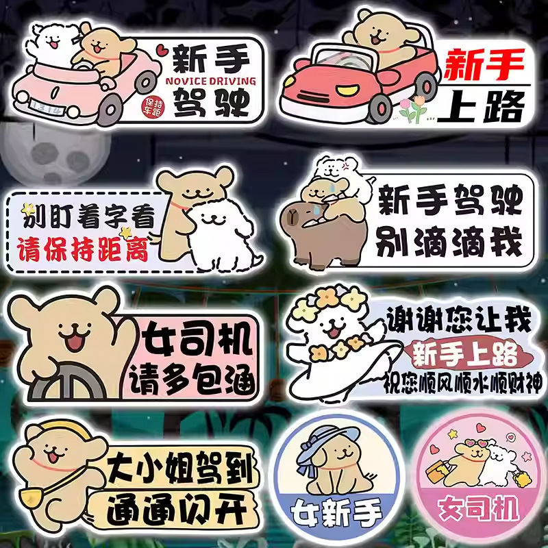 线条狗汽车新手上路实习车贴保持车距提示贴防水防晒磁吸车身贴纸