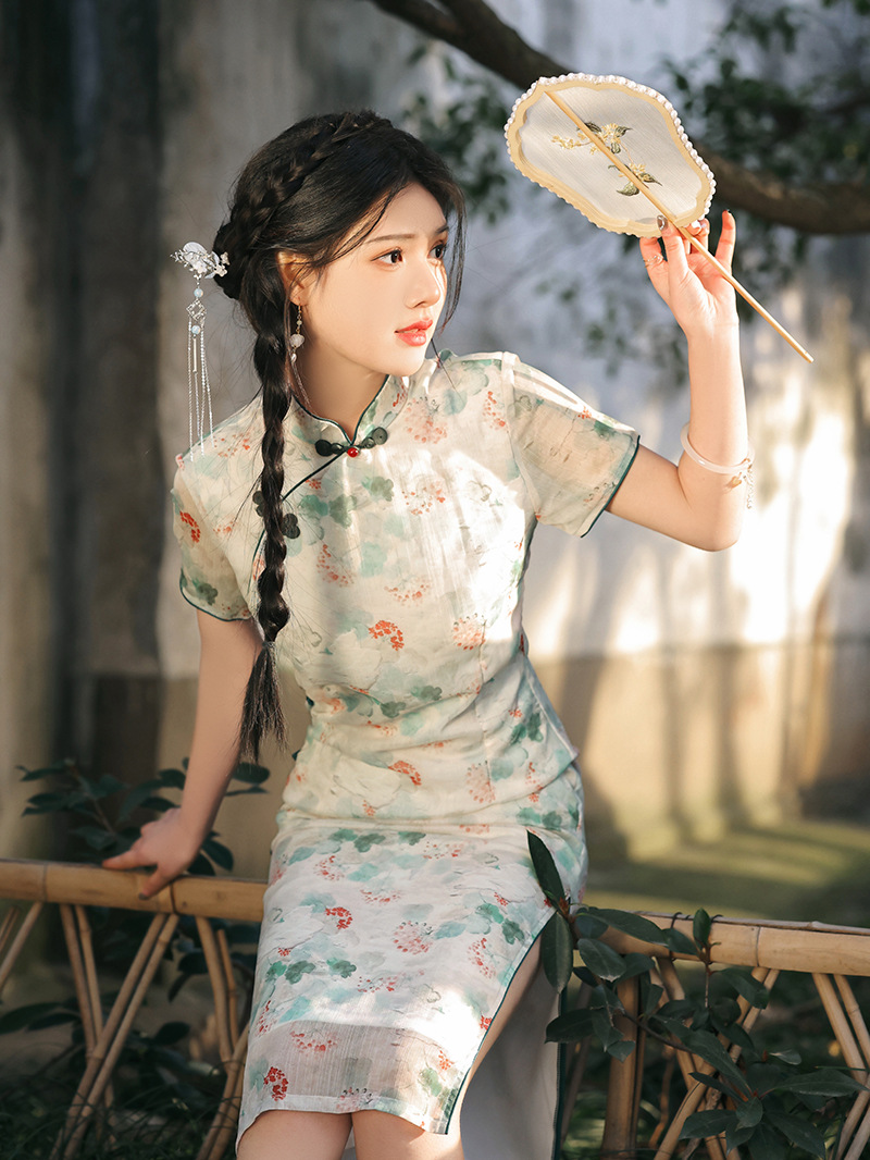 中華民国の女性のチャイナドレス新しい中国風の夏の新しいスタイルの日常着用可能な国民風の女の子のレトロなドレス