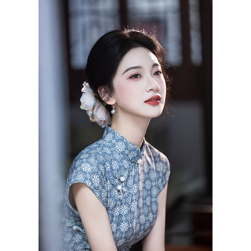 2025新型古法平裁チャイナドレス青レトロ新中国式絶美日常素雅気質若い女性夏