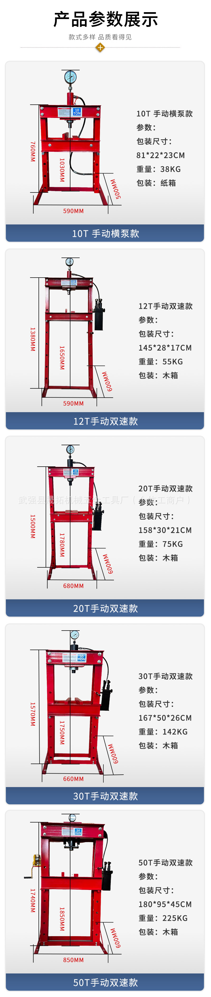 仕様 デポジット,10T手動横型ポンプモデル,12T手動横型ポンプモデル,12Tマニュアル2速モデル,20Tマニュアル2速モデル,30Tマニュアル2速モデル,50Tマニュアル2速モデル,12Tハンドラッキーオールインワン空気圧モデル,20Tハンドラッキーオールインワン空気圧モデル,30Tハンドラッキーオールインワン空気圧モデル,50Tハンドラッキーオールインワン空気圧モデル,12Tマニュアル2速(デュアルポンプ内蔵),20Tマニュアル2速(デュアルポンプ内蔵),30Tマニュアル2速(デュアルポンプ内蔵),50T手動2速(デュアルポンプ内蔵),12Tペダルエアモデル,20Tペダルエアモデル,30Tペダルエアモデル,50Tペダルエアモデル