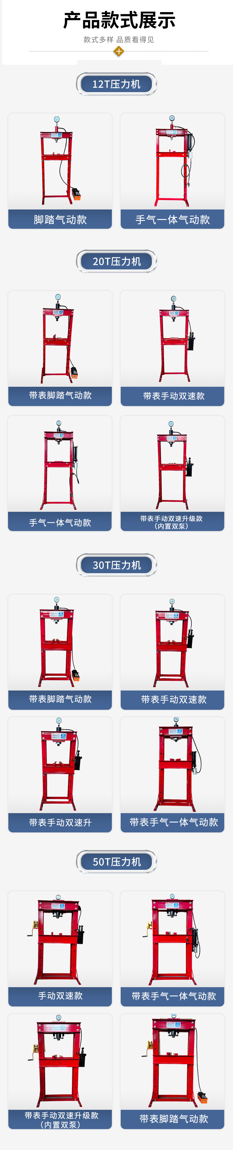 气动带表压力机20/30/50/75/100T美式欧式液压机可嵌入式防震油表