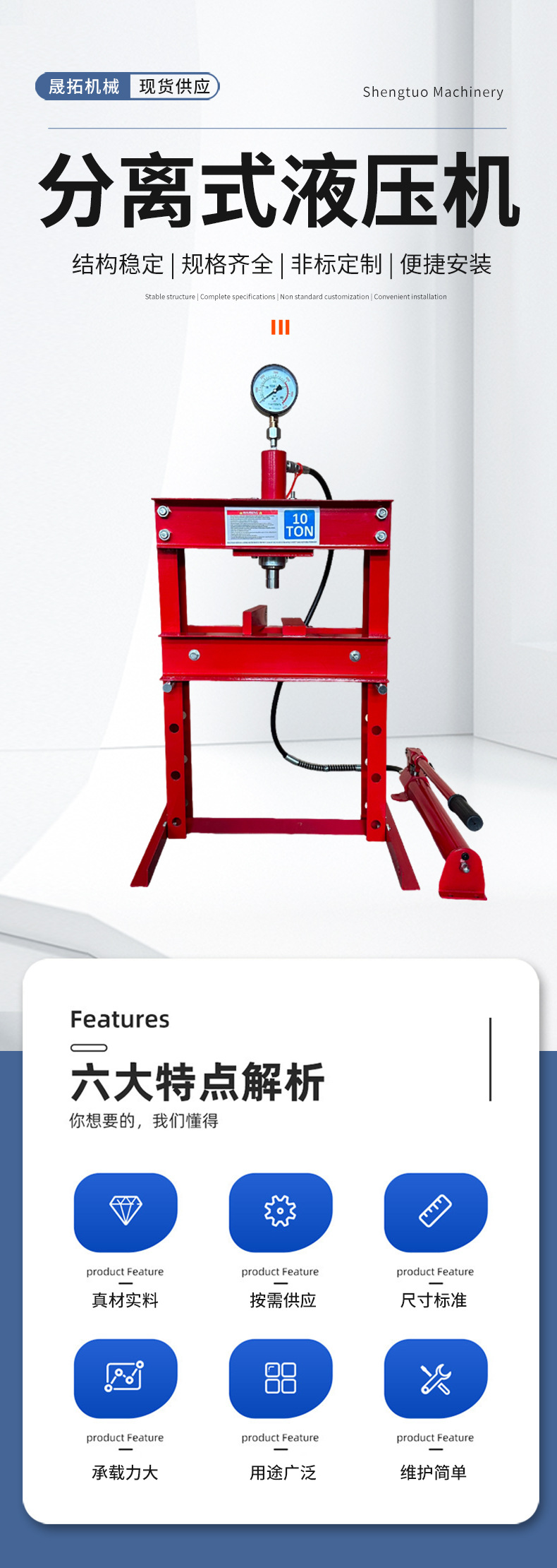 轴承压力机分体式12T20T压力机液压压床汽修工具手动压床液压压床