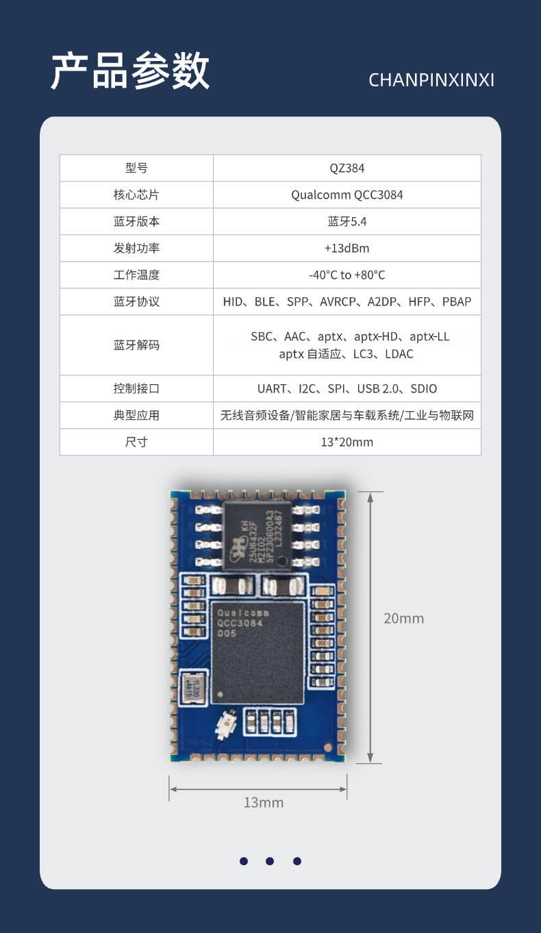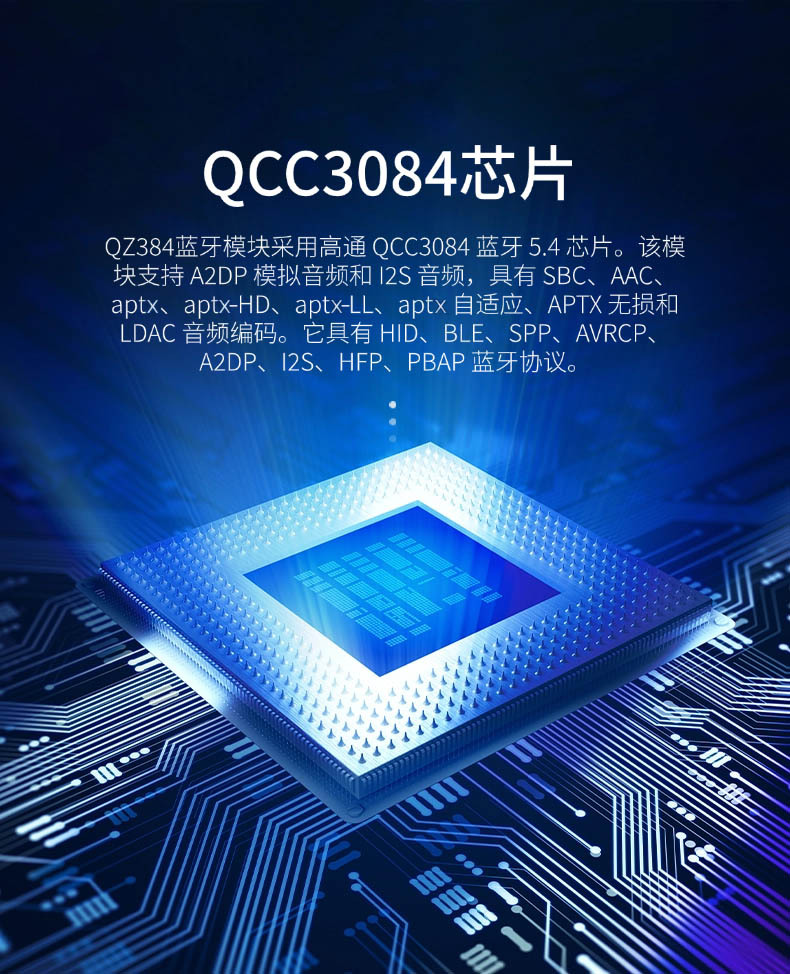 QZ384 クアルコム QCC3084 Bluetooth モジュール LDAC aptx-HD aptx-LL Bluetooth PCBA ソリューション開発