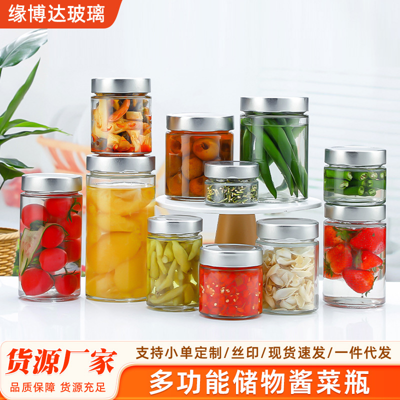 玻璃罐厨房杂粮储物罐自制酱菜分装瓶带盖密封辣椒酱瓶密封保鲜
