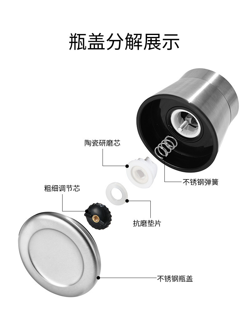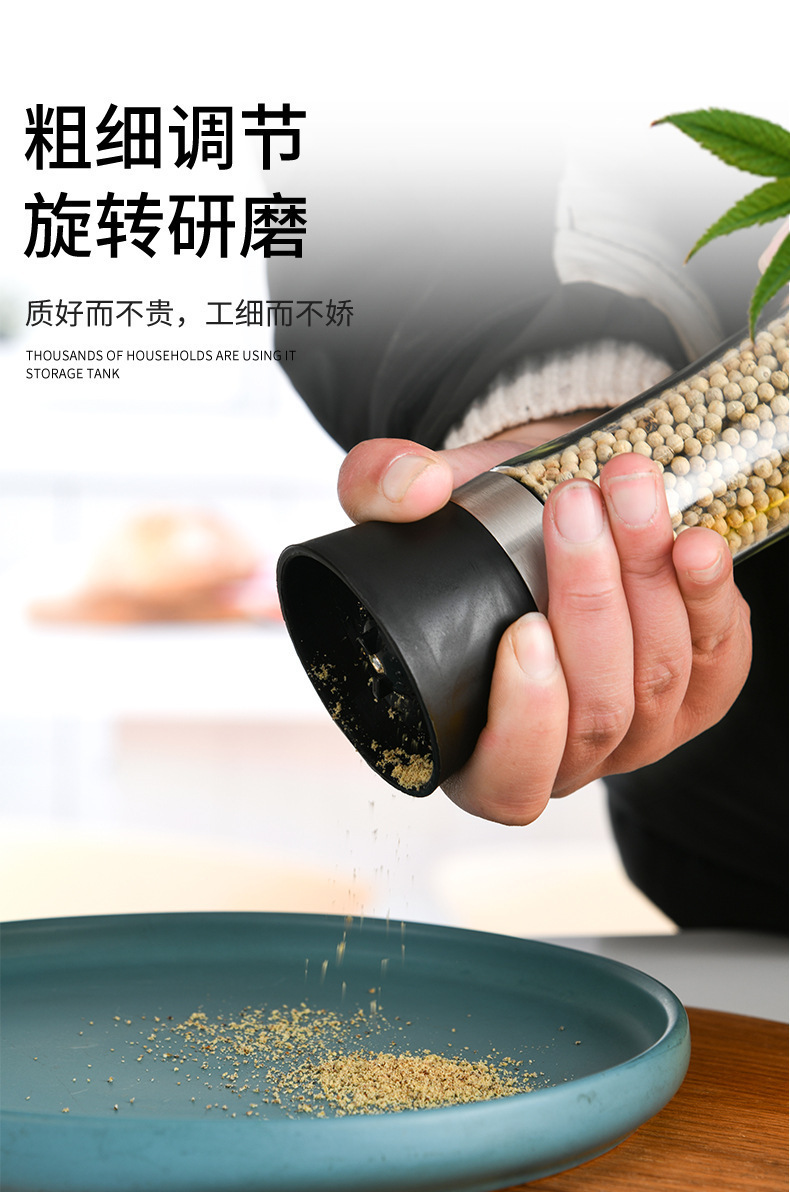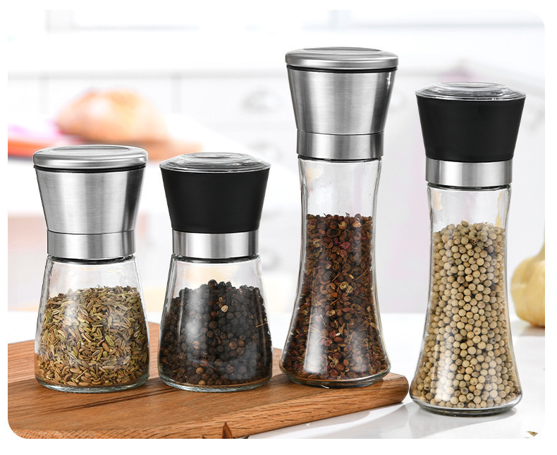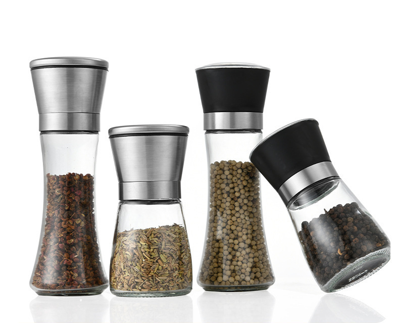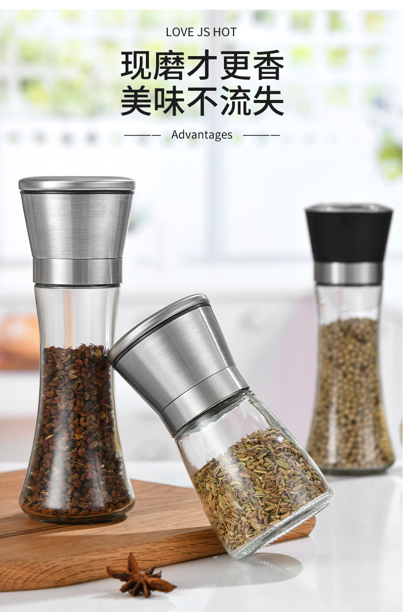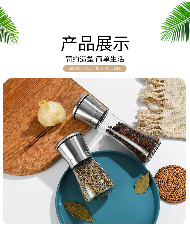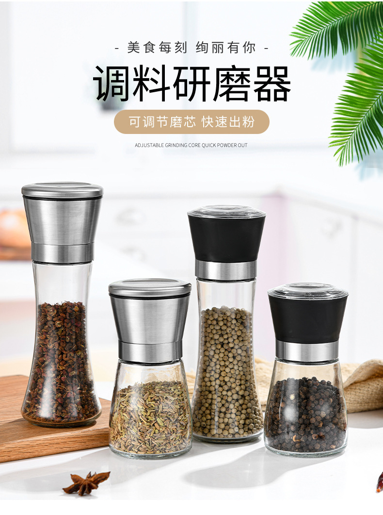 工厂黑胡椒手不锈钢研磨器调味瓶厨房用品玻璃不锈钢研磨器