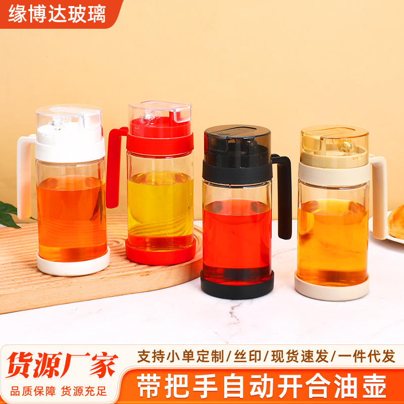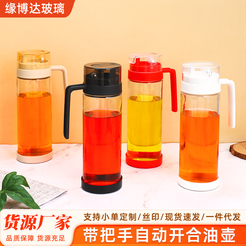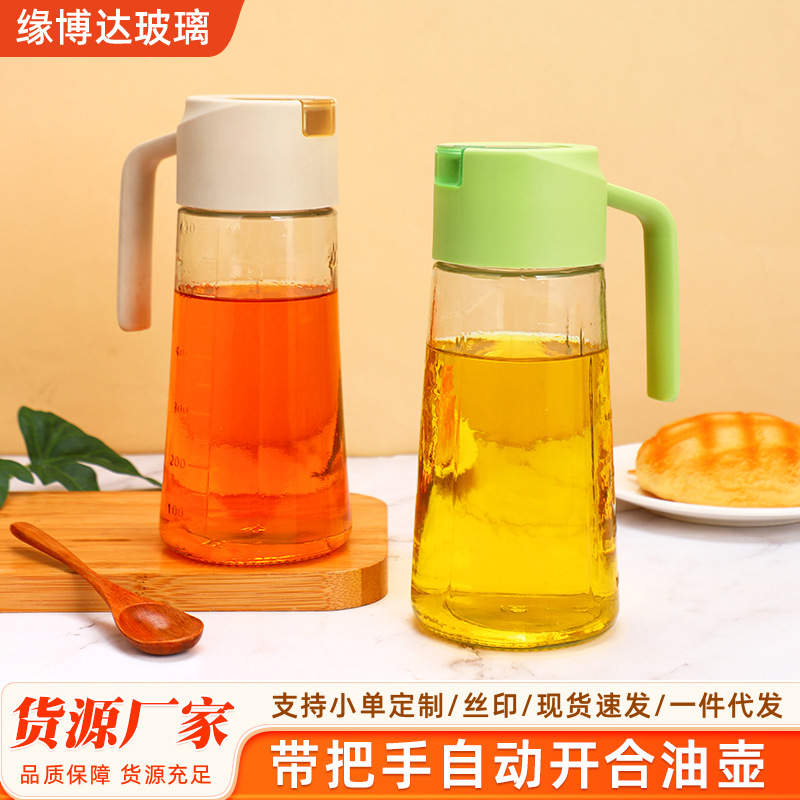 ハンドル付きガラス製オイルポット、自動開閉、漏れ防止、耐高温、キッチン家庭用醤油酢分注ボトル、滴下防止