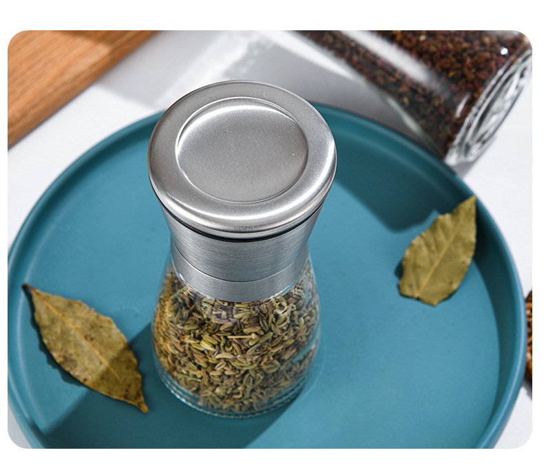 ステンレスガラス研磨器手動調味料瓶卸売り胡椒粉カプサイシン粉クミン研磨調味料瓶