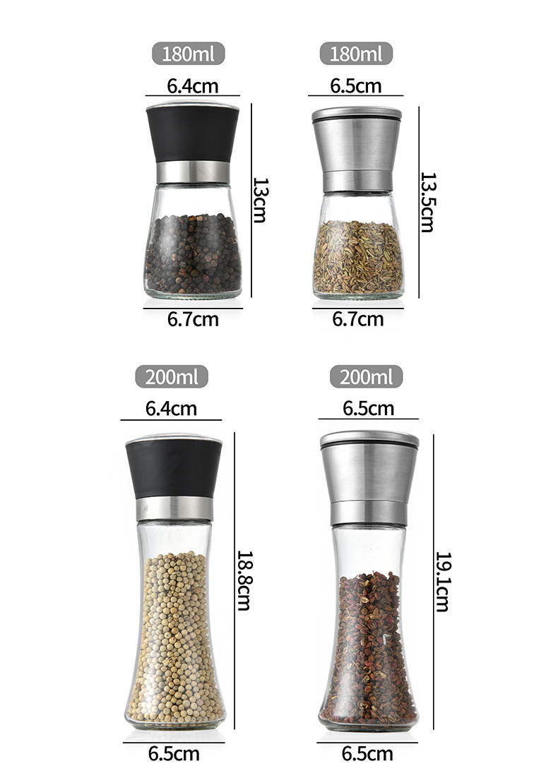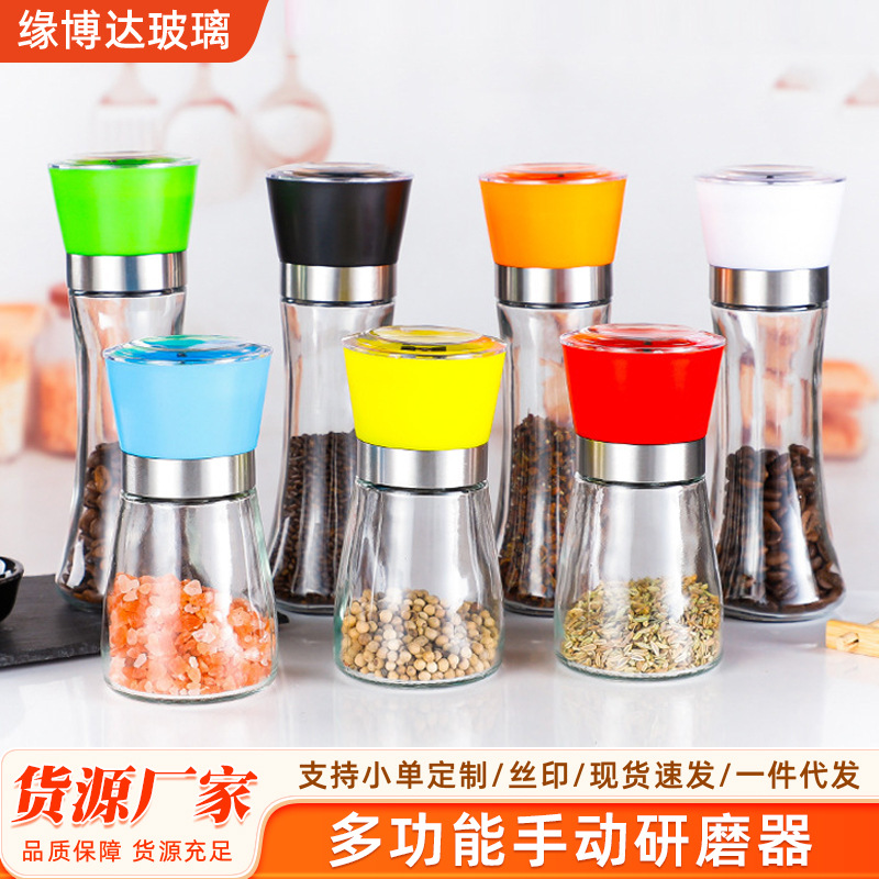 ペッパーガラスグラインダー手動スパイスグラインダーキッチンブラックペッパーグラインダーボトル食品グレード