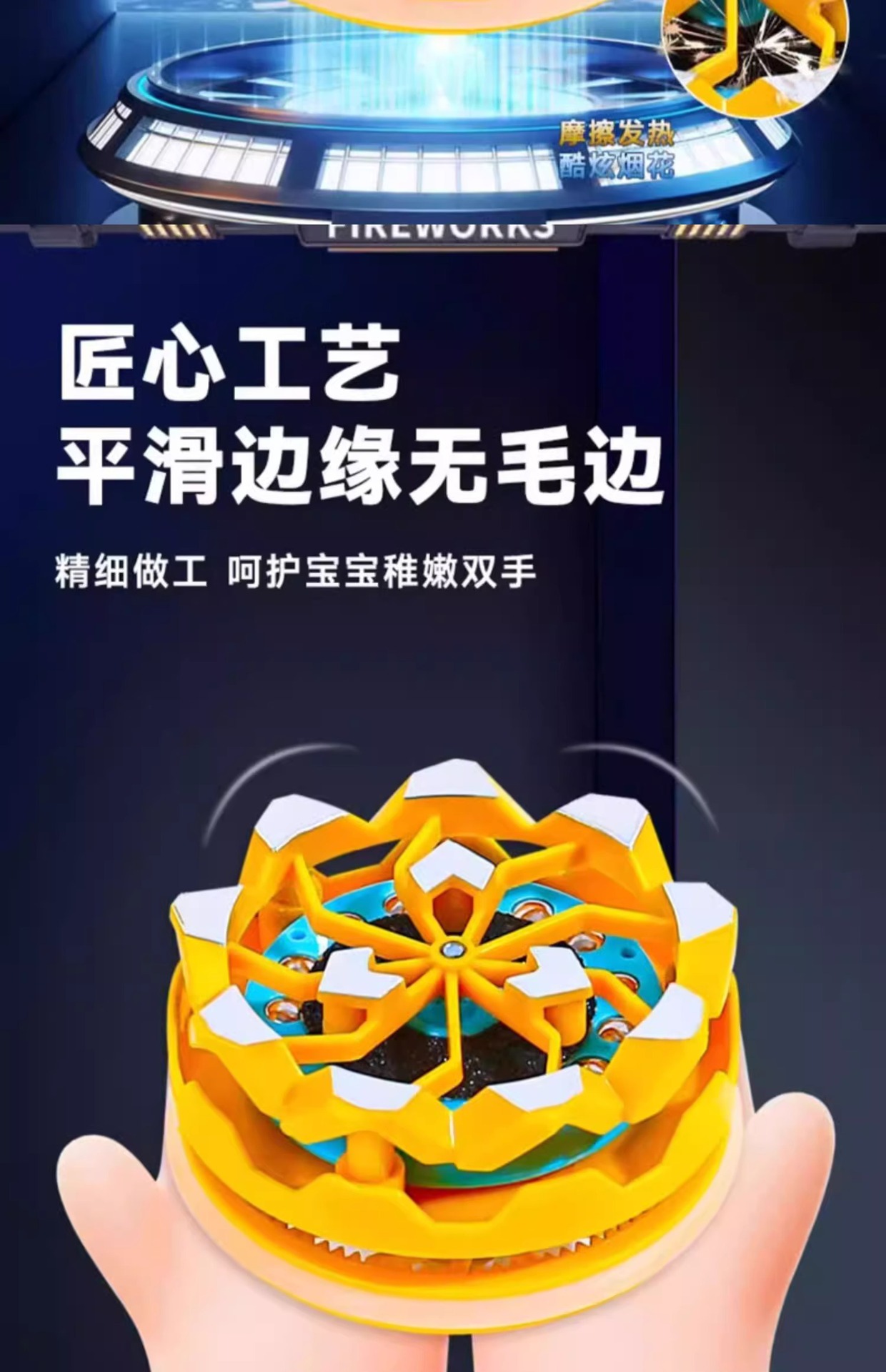 創造的な手持ち式火打石花火陀螺は、火を発生させ、回転し、光を放ちます。二人対戦の衝突玩具、創造的な発光です。