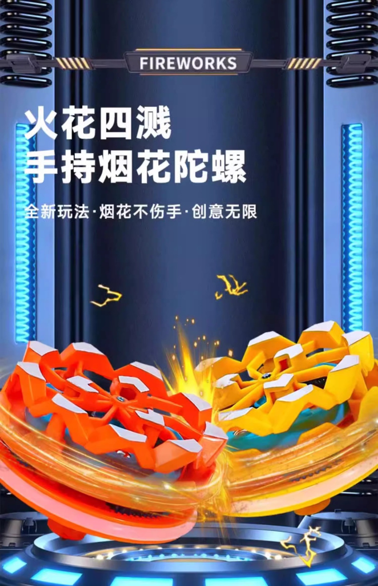 抖音同款烟花陀螺会冒火的发光旋转爆旋陀螺对战解压玩具儿童男孩