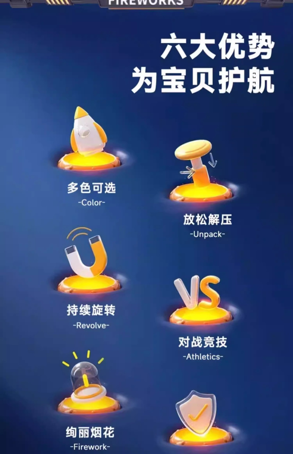 烟花陀螺解压旋转指尖陀螺会冒火发光闪光旋转减压玩具批发无