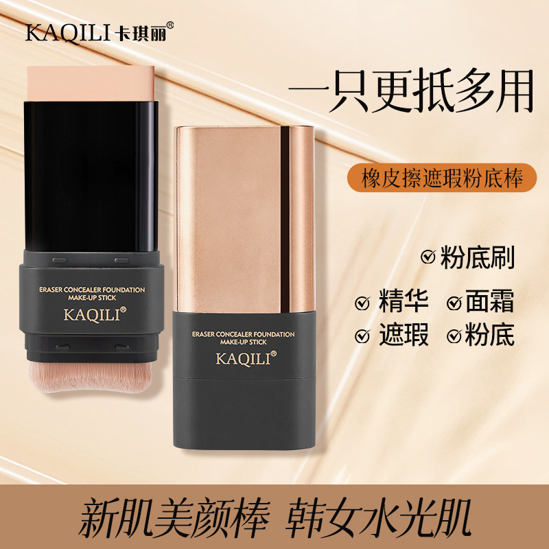 消しゴムのファンデーションの棒は化粧のカバーを持っています。