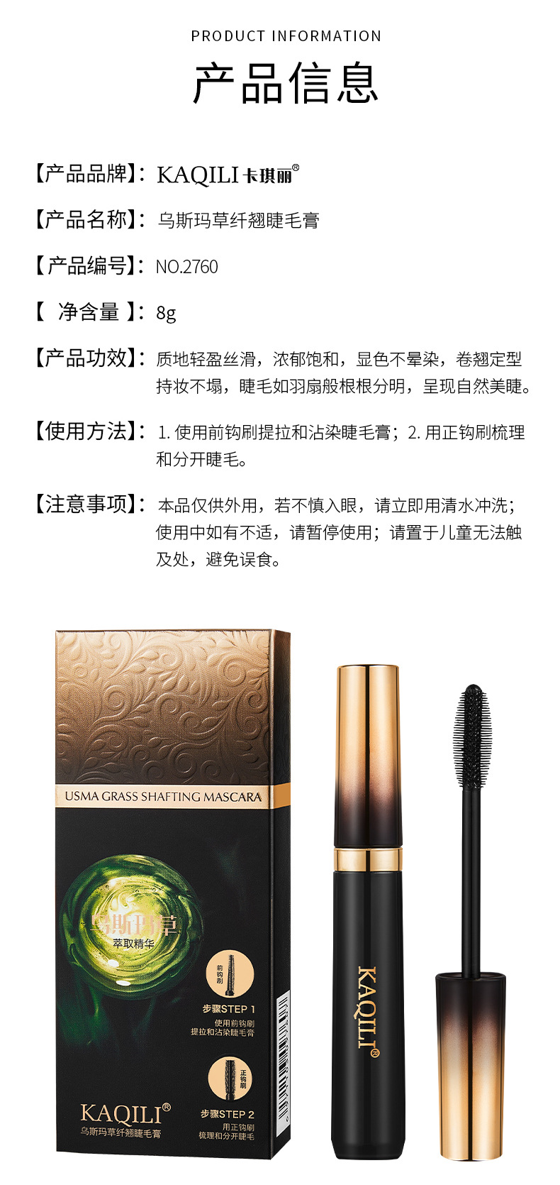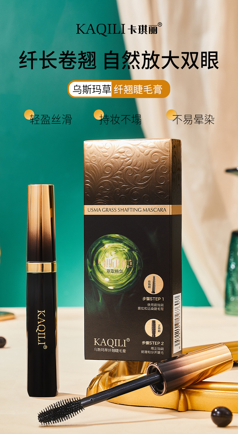 乌斯玛草纤翘睫毛膏卷翘自然打底膏防水浓密不晕染睫毛膏彩妆批发