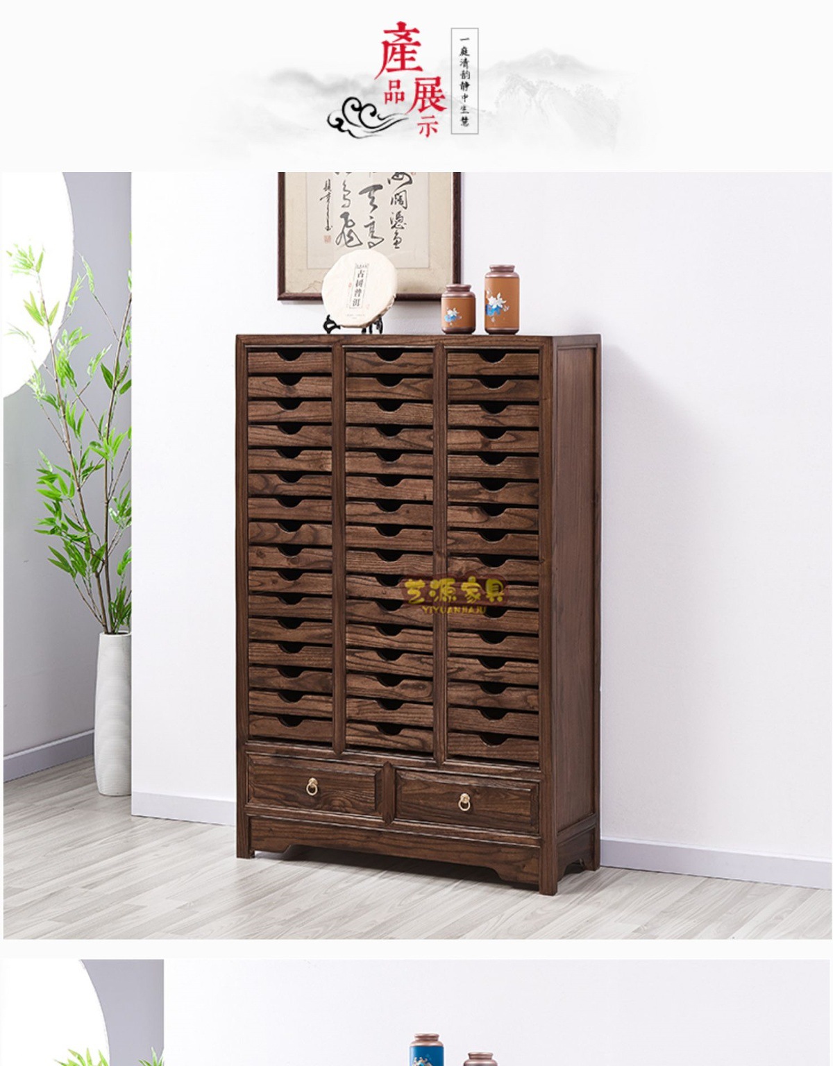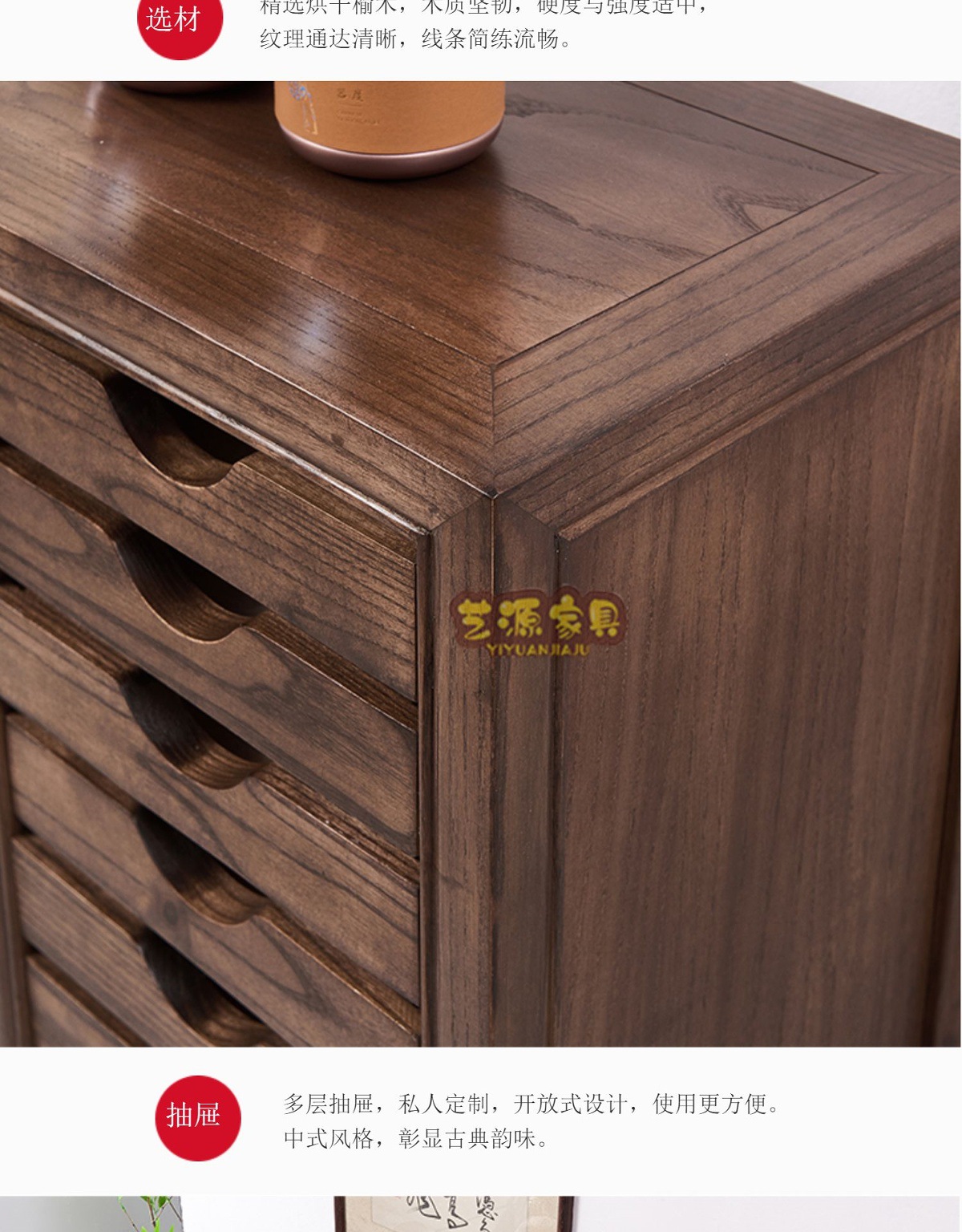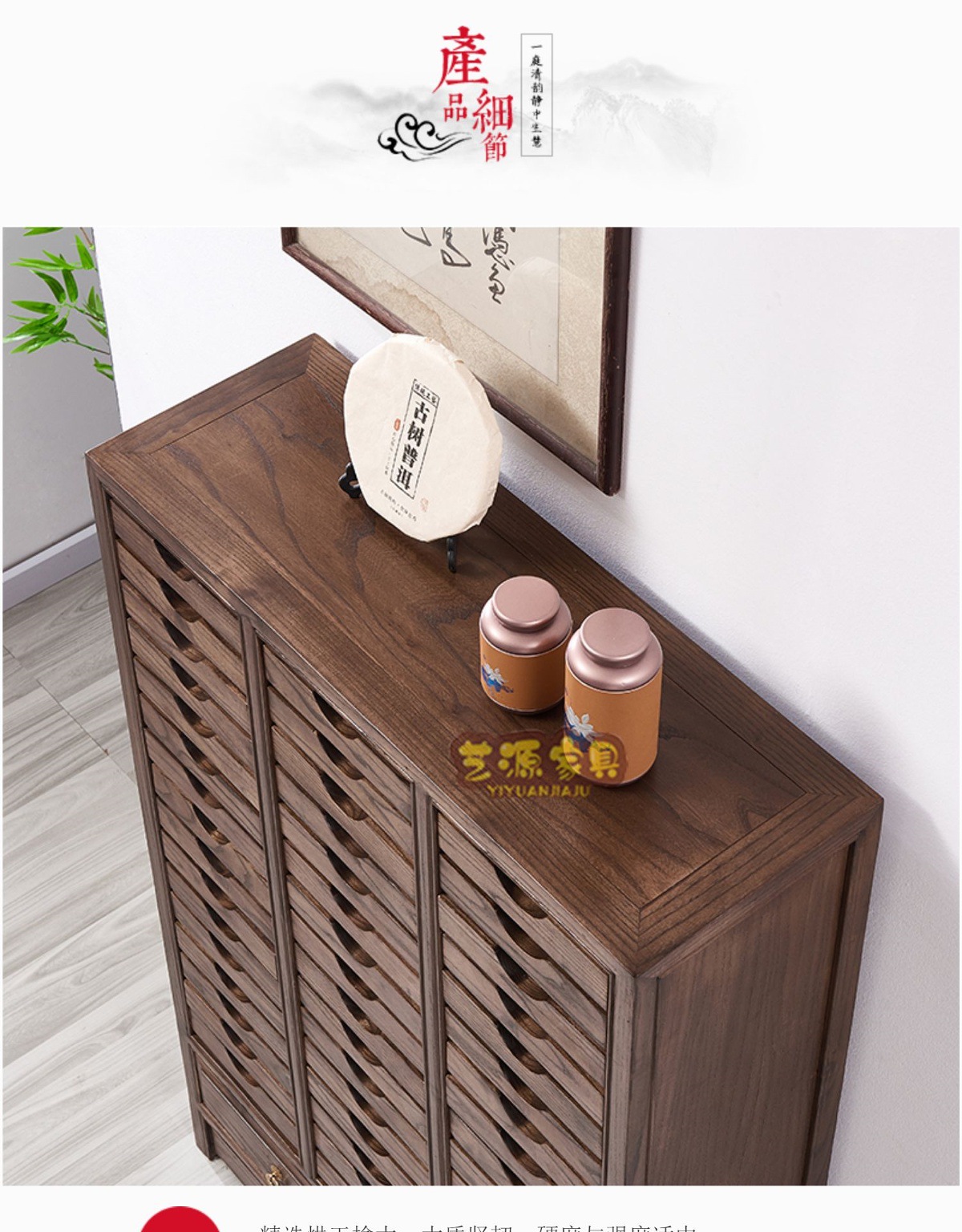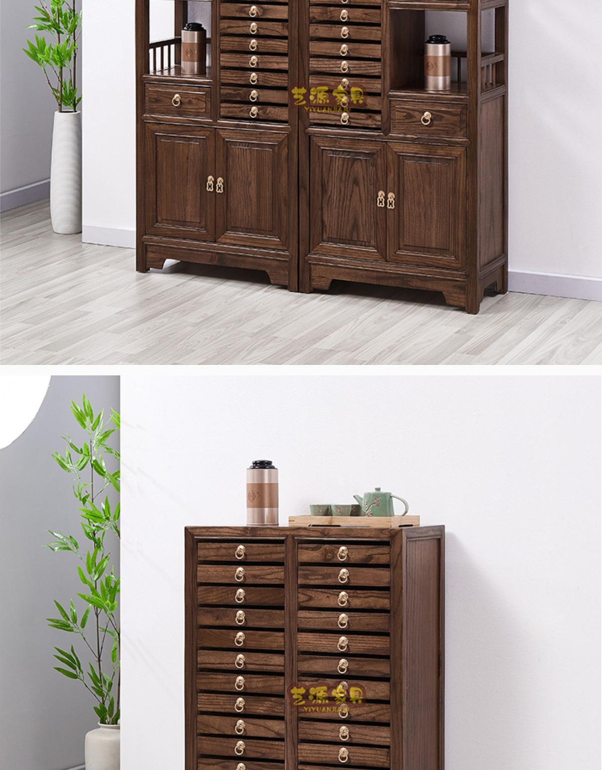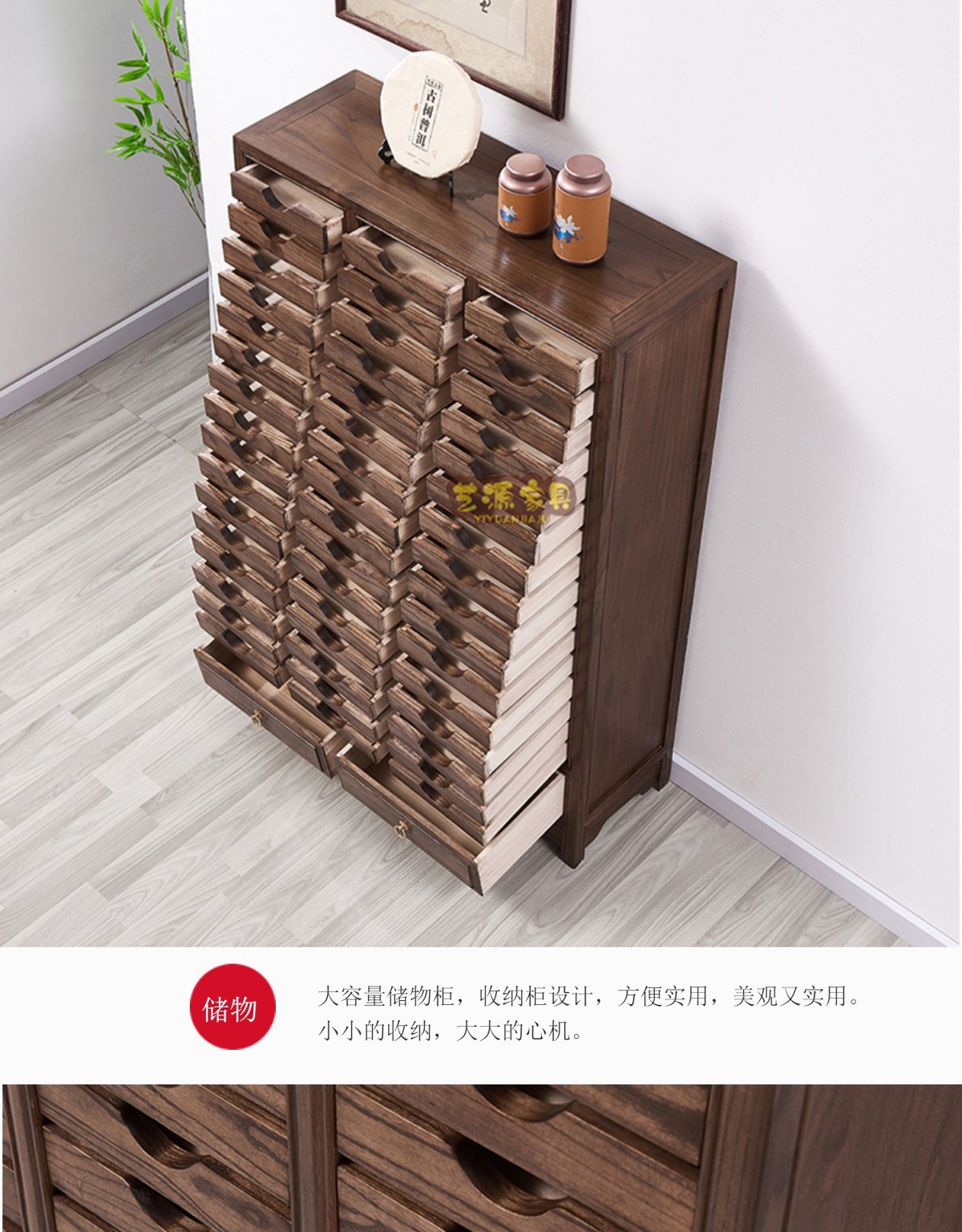 ウォールナット色のニレ茶ケーキキャビネット茶収納キャビネットプーアル茶キャビネット無垢材多層茶収納キャビネット