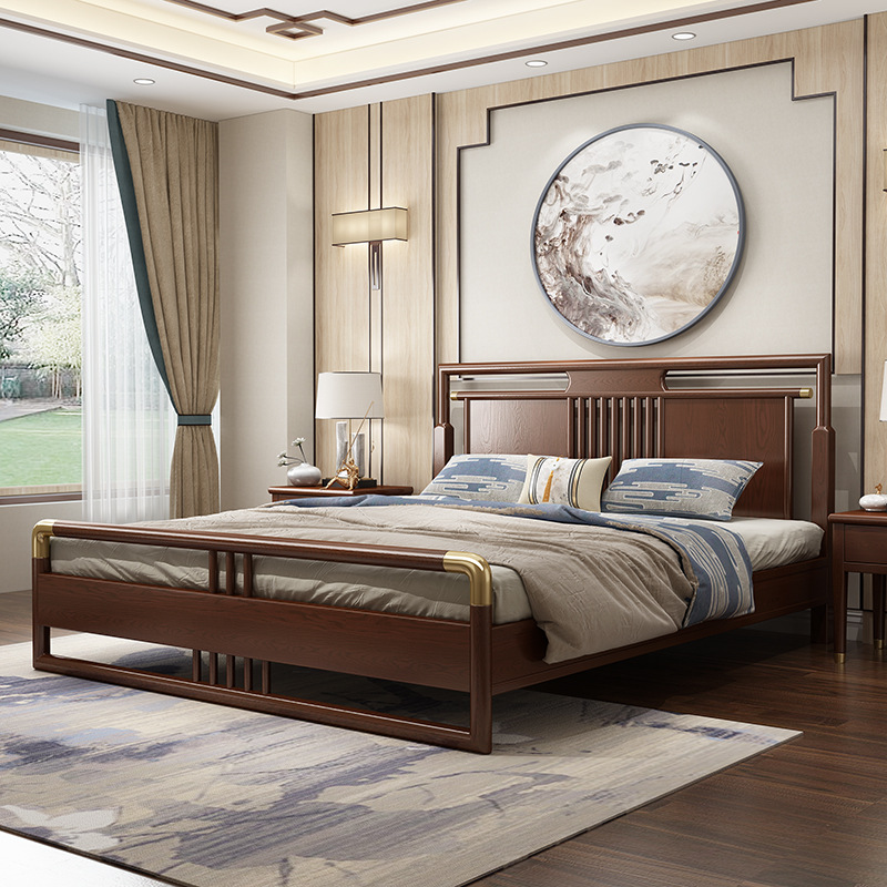 全無垢材の新しい中国風アッシュベッドライト高級マスターベッドルームウェディングベッド 1.95m ハイボックスベッド大型ヴィラ高級家具