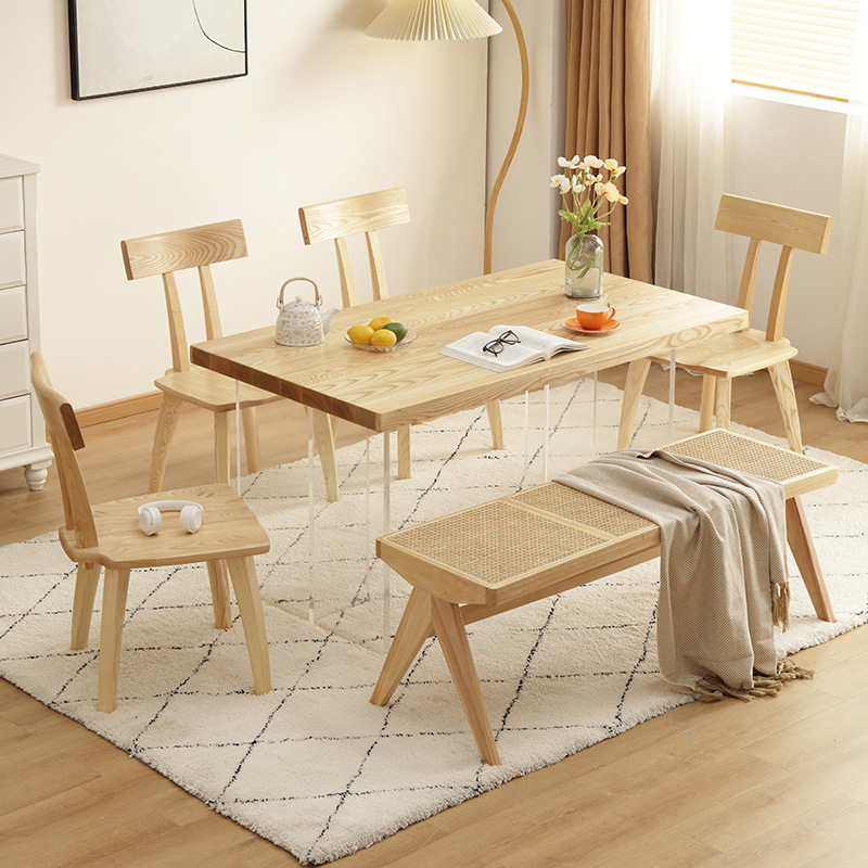 モダンでシンプルな無垢材のダイニングテーブルと椅子の組み合わせアッシュウッドの丸太テーブルリビングルームホームアクリル吊り下げダイニングテーブル