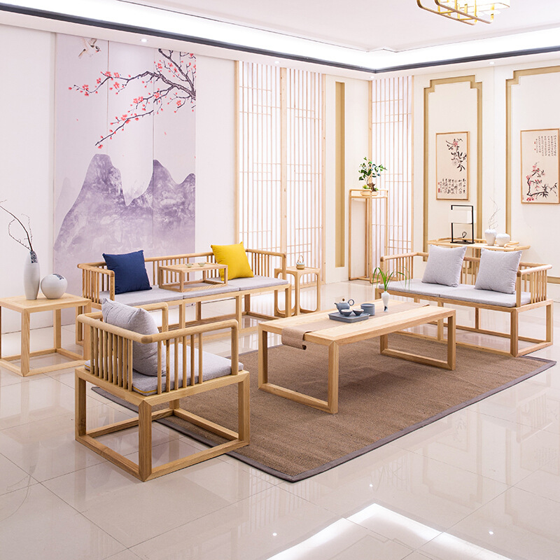 新中国式ソファー全実木組み合わせ白蝋木禅意家具別荘名宿ホテル工事単工場