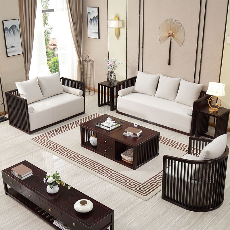 新中国式実木ソファセット禅意白蝋木ソファ軽豪華現代シンプルリビング家具セット