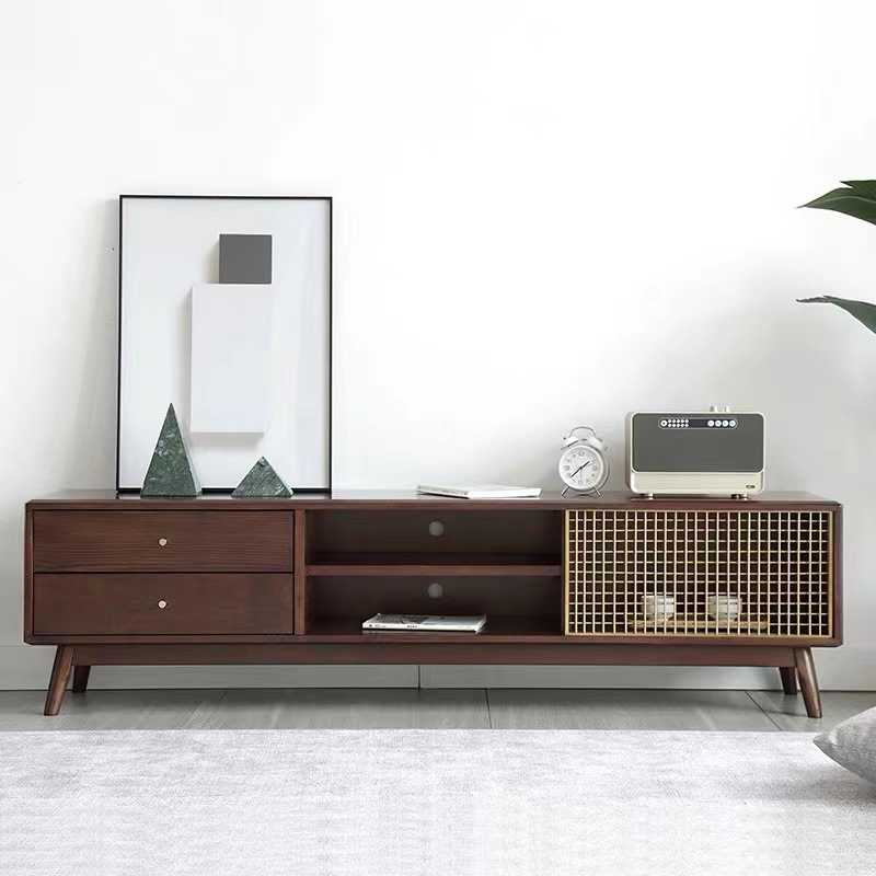 北欧スタイルの無垢材テレビキャビネットアッシュウッドログ小さなリビングルーム 1.8m フロアキャビネットパーソナライズされた寝室のオーディオビジュアルキャビネット