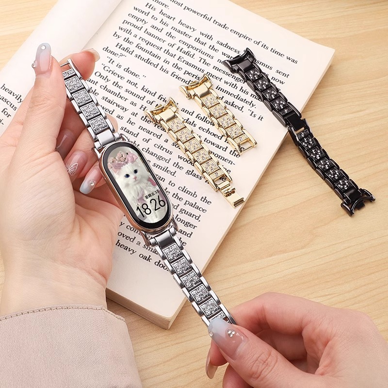 Xiaomi 9 ブレスレットストラップ、メタル 3 ビーズフルダイヤモンド、ハイエンドのベビーブレスレット、Xiaomi 8/9NFC ブレスレットストラップに適しています。