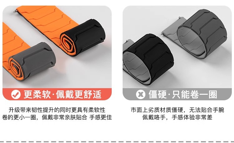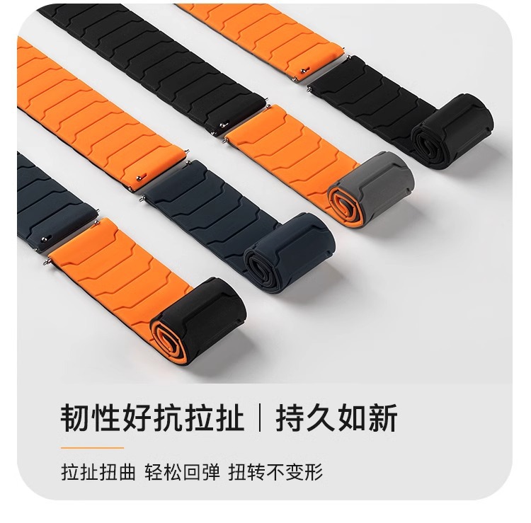 适用华为watch5小米s4荔枝纹硅胶gt6磁吸ultra折叠扣手表带22通用