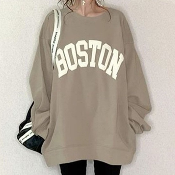 日系秋冬新作山積み袖ミディアムロングプルオーバー丸襟ゆったりスウェットアルファベットプリント柄ファッションカジュアル