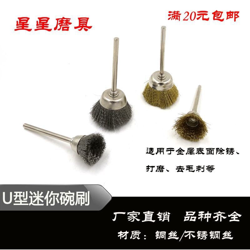 手作り DIY 3 ミリメートルハンドルワイヤーブラシミニ銅線ブラシ研磨ボウル型 T 字型金属錆除去研磨ヘッド携帯電話除去