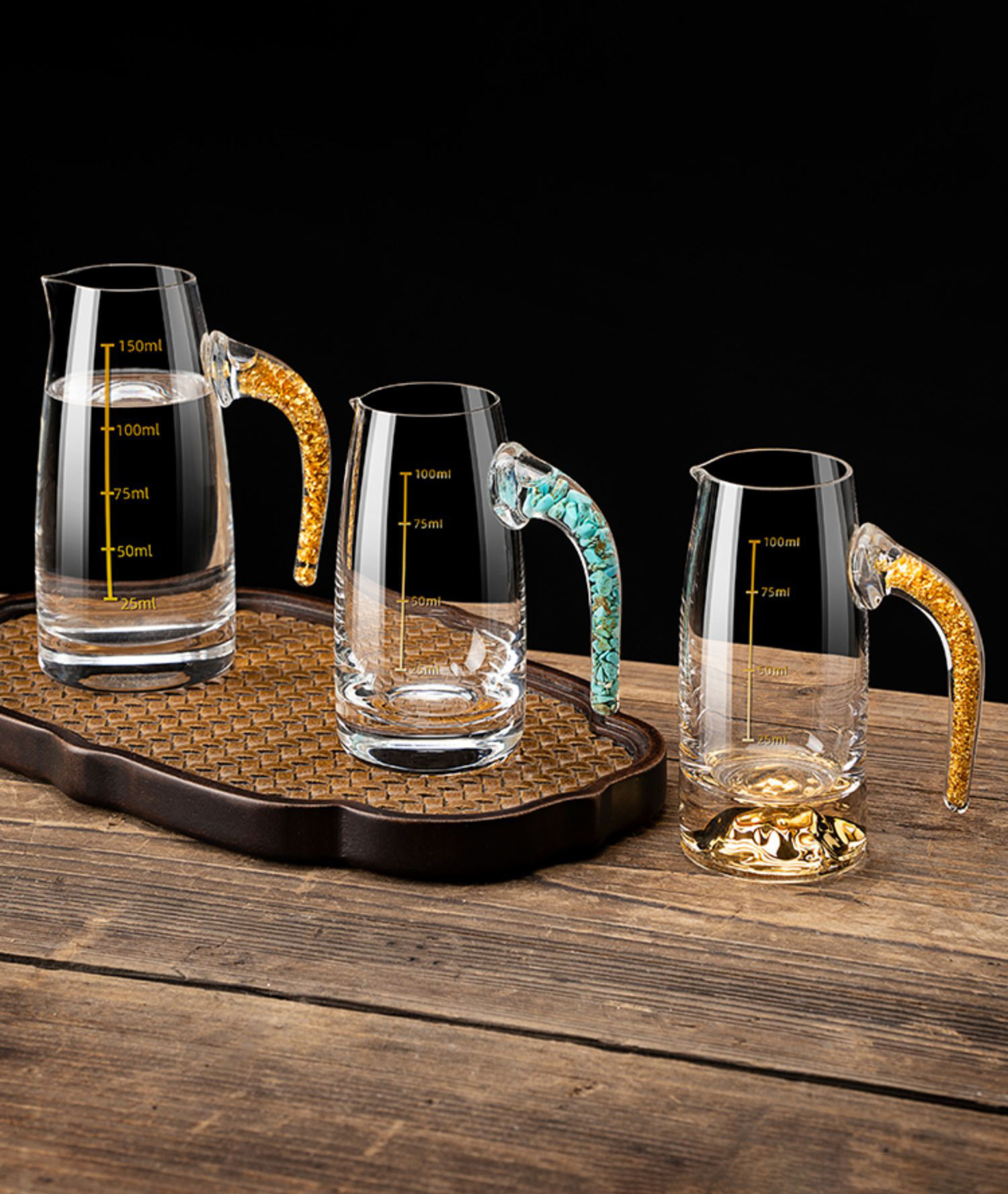 クリスタル金箔金山ガラス白ワイングラススピリットグラス一口カップワインディスペンサーホーム中国風ワインディスペンサーハンドル付き
