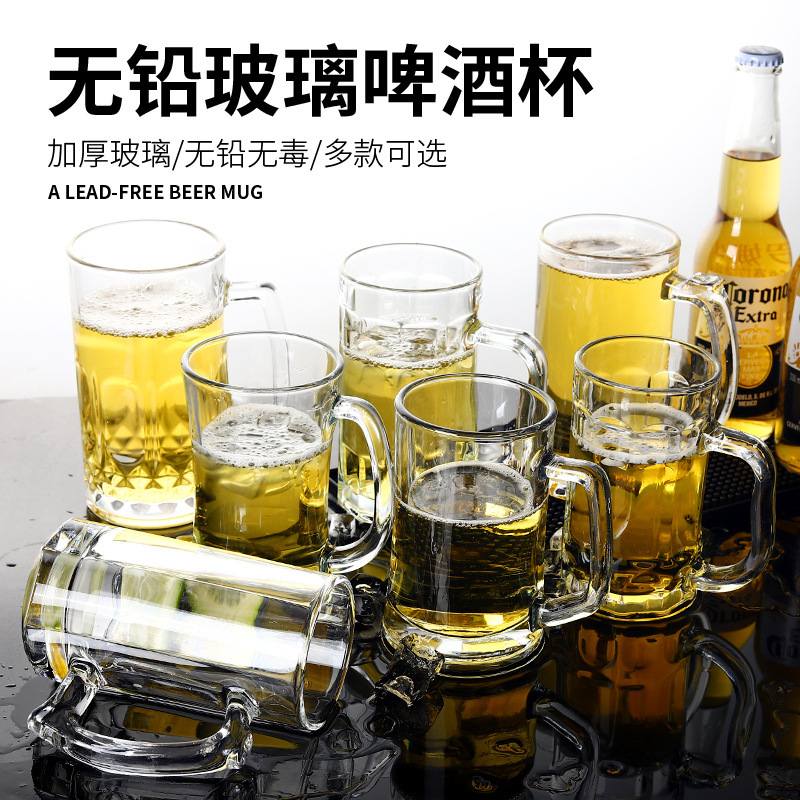 ヨーロッパのガラス生ビールカップ家庭用厚みのあるハンドル付き大容量ビールカップヒーローティードリンクカップ広告カップコールドドリンクカップ