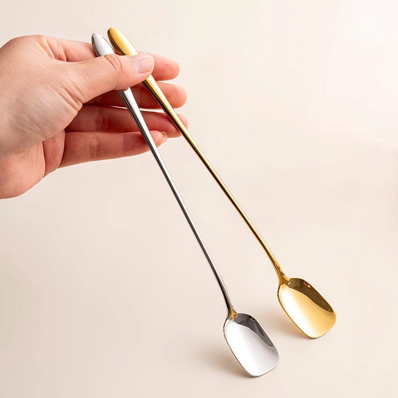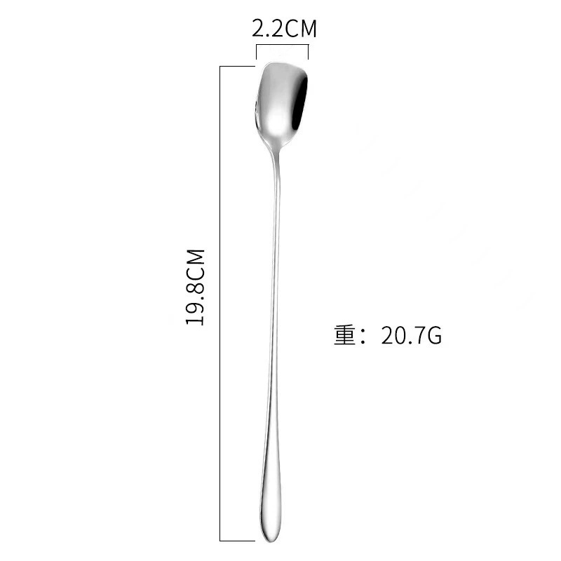 不锈钢方头勺长柄咖啡搅拌勺酒吧冰勺吧勺家用蜂蜜甜品勺调羹勺
