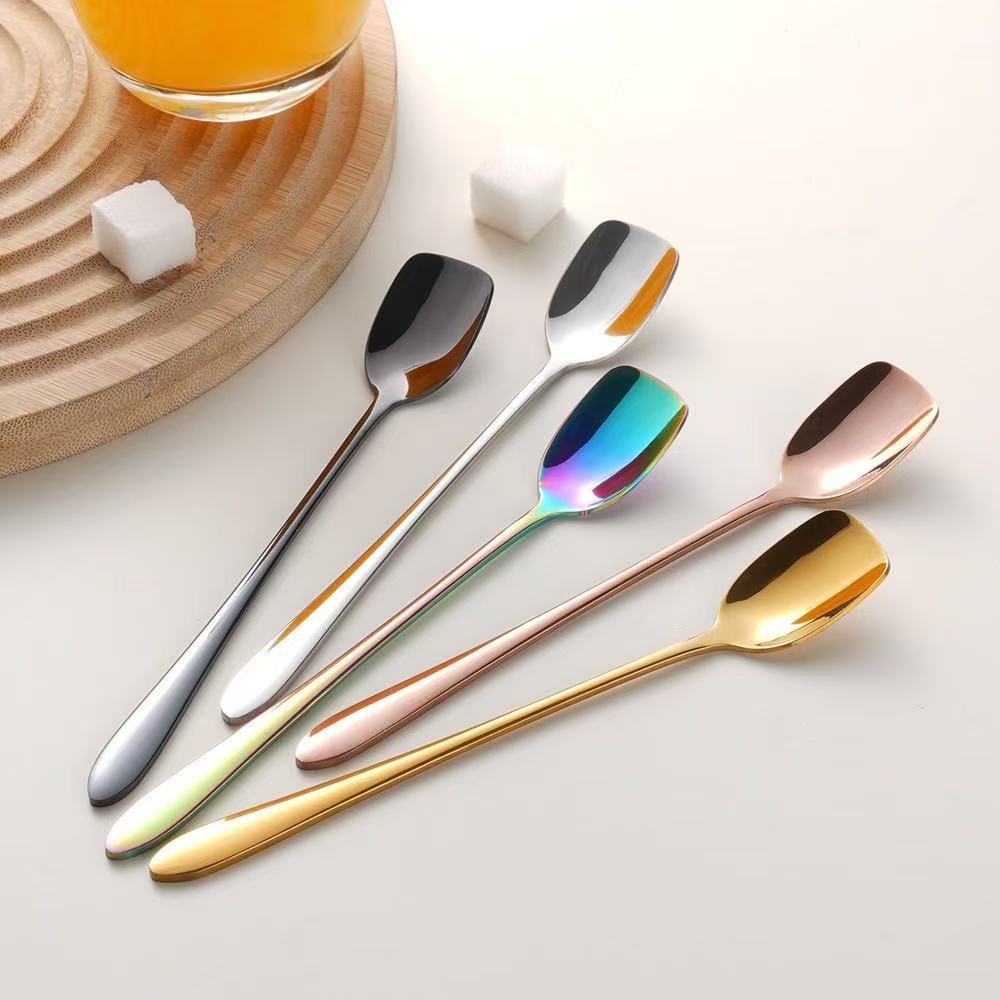 304ステンレス角頭スプーン長柄コーヒー攪拌スプーンバー氷スプーン家庭用蜂蜜甘いスプーンクロスボーダー