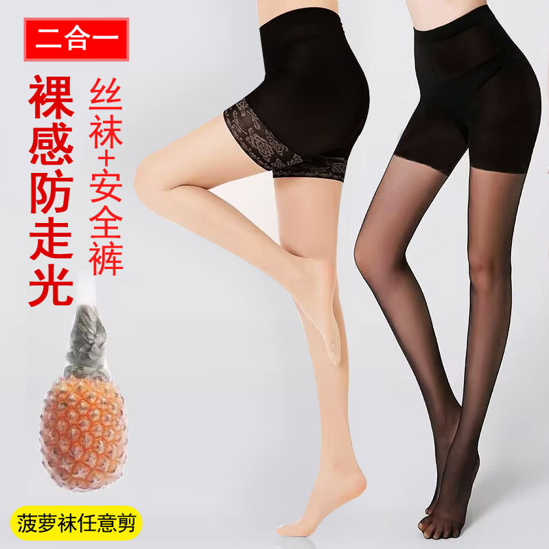 女性用防狼ストッキング、パイナップルソックス、ネットセレブ人気モデル、安全パンツ付きストッキング、引っ掛かり防止、夏用露出防止パンスト