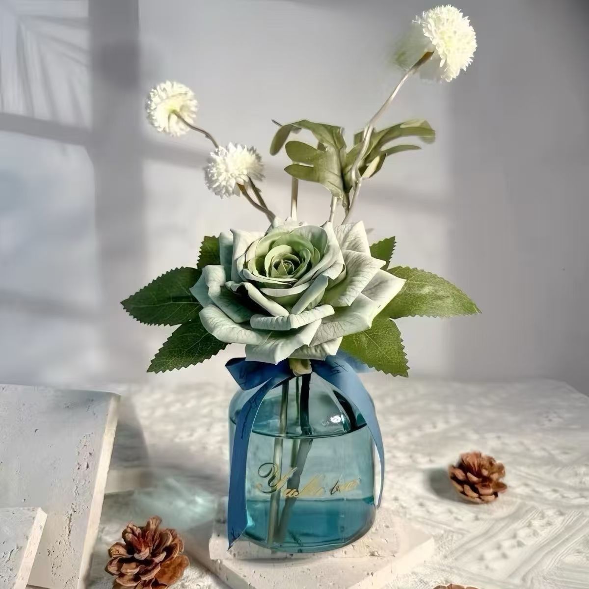 草に接着されたドライフラワー