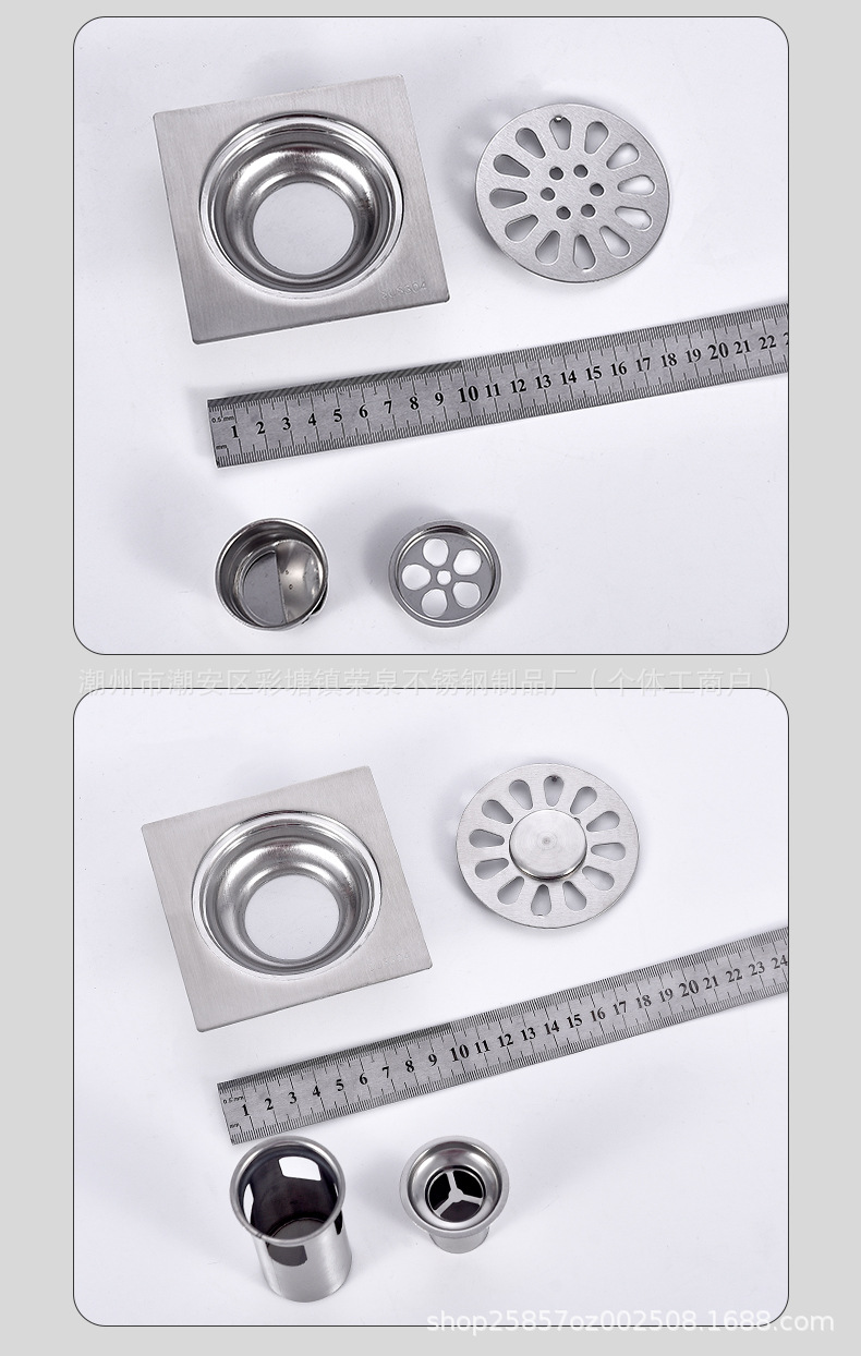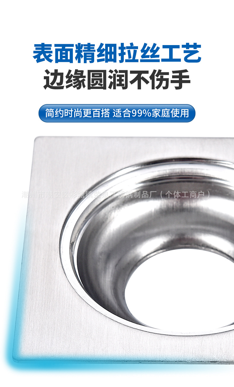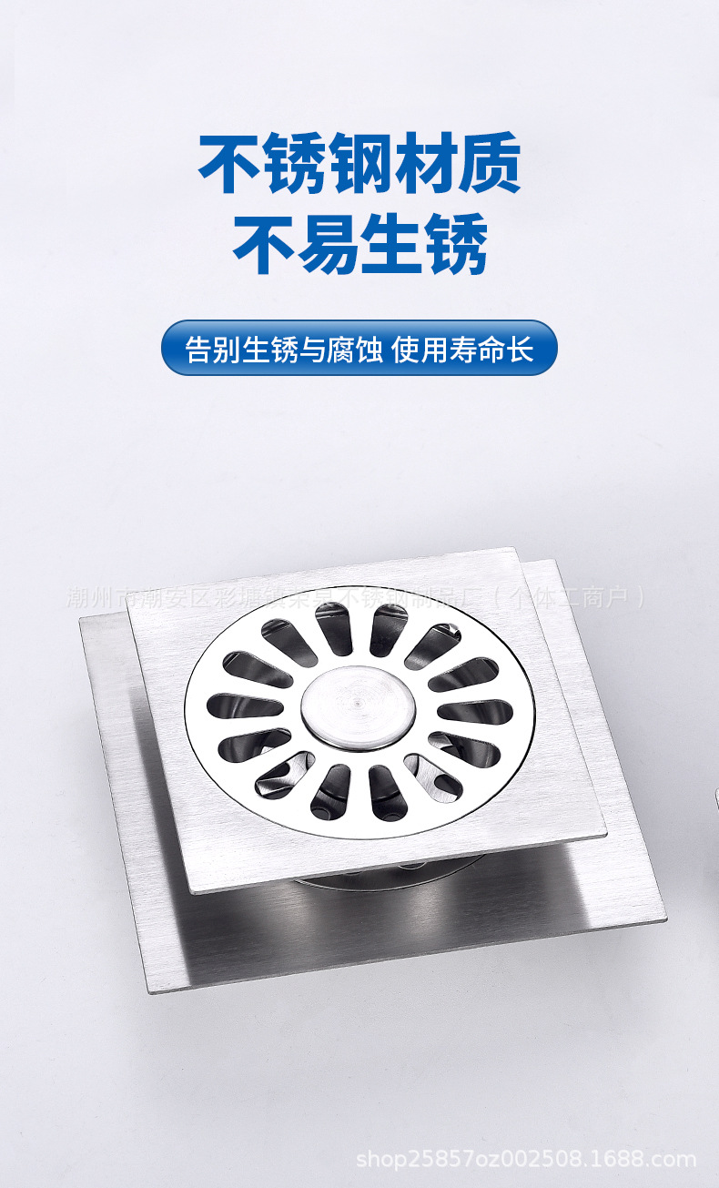 浴室用ステンレス製排水溝、正方形、ホテル、シャワールーム、トイレ、洗濯機排水管、防虫・防臭排水溝