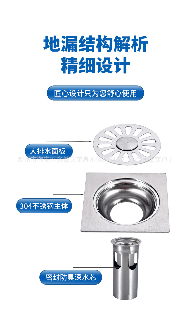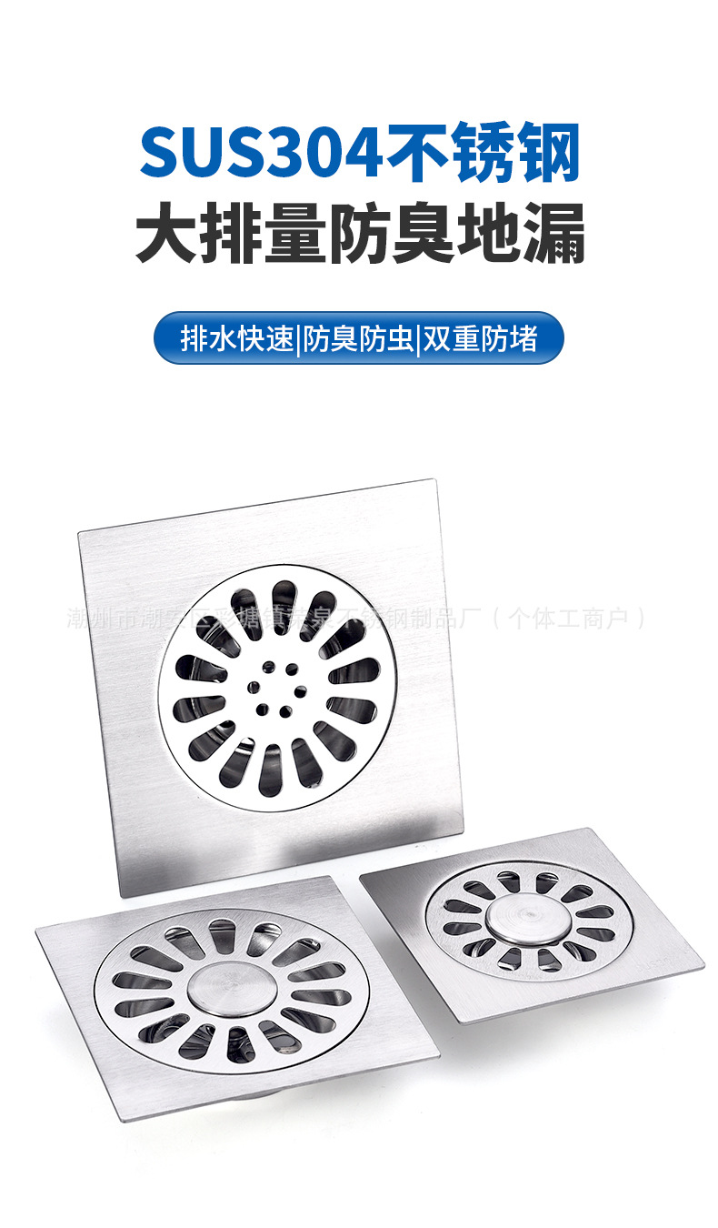 304不锈钢地漏 水封防臭芯卫生间洗衣机酒店淋浴室大排量工程地漏