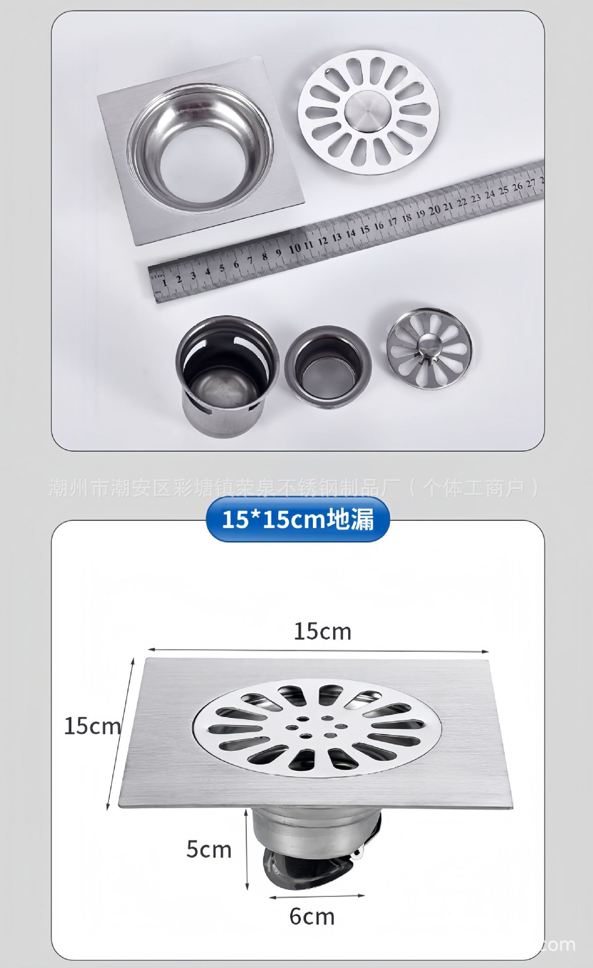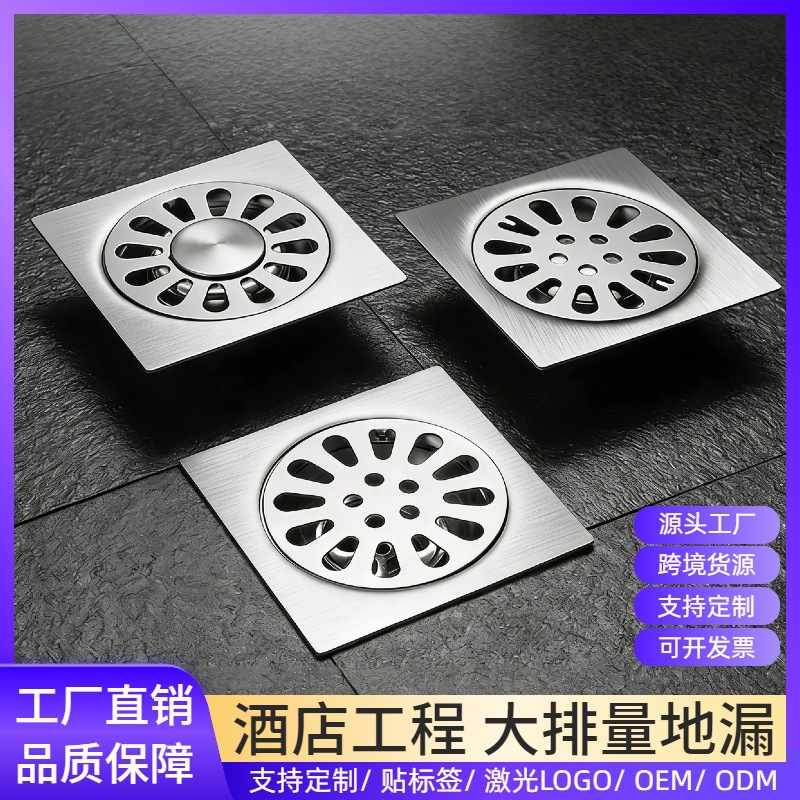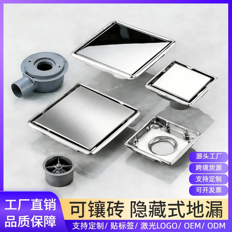 中东南美跨境304不锈钢隐形地漏15*15cm卫生间隐藏式大地漏防臭芯