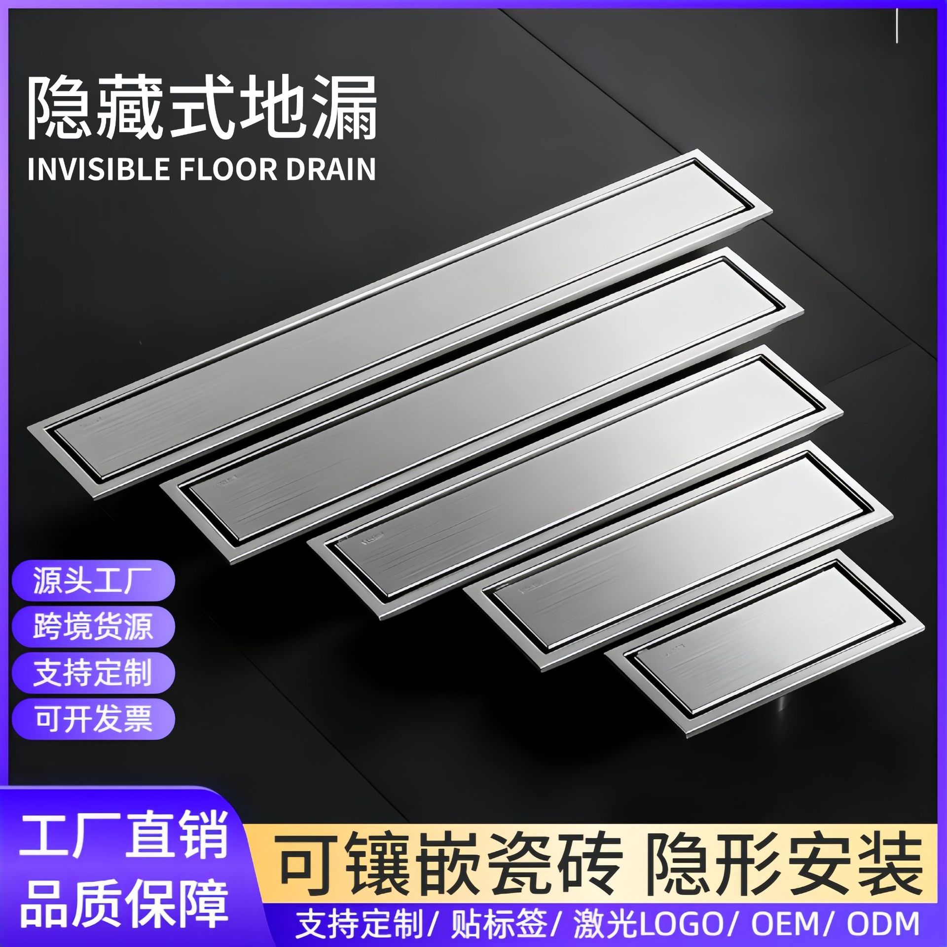 304不锈钢长方形地漏酒店卫生间下水管道防臭加长条形隐藏式地漏