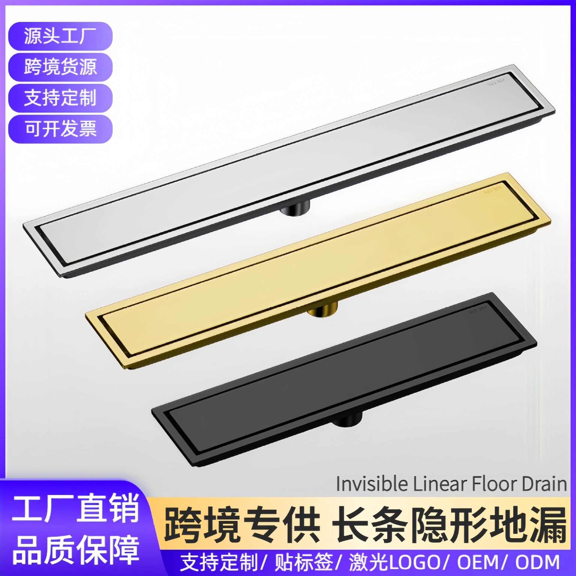 黒 304 ステンレス鋼ロング床排水ホテルのシャワールーム大排気量エンジニアリング拡張防臭ストリップ床排水卸売