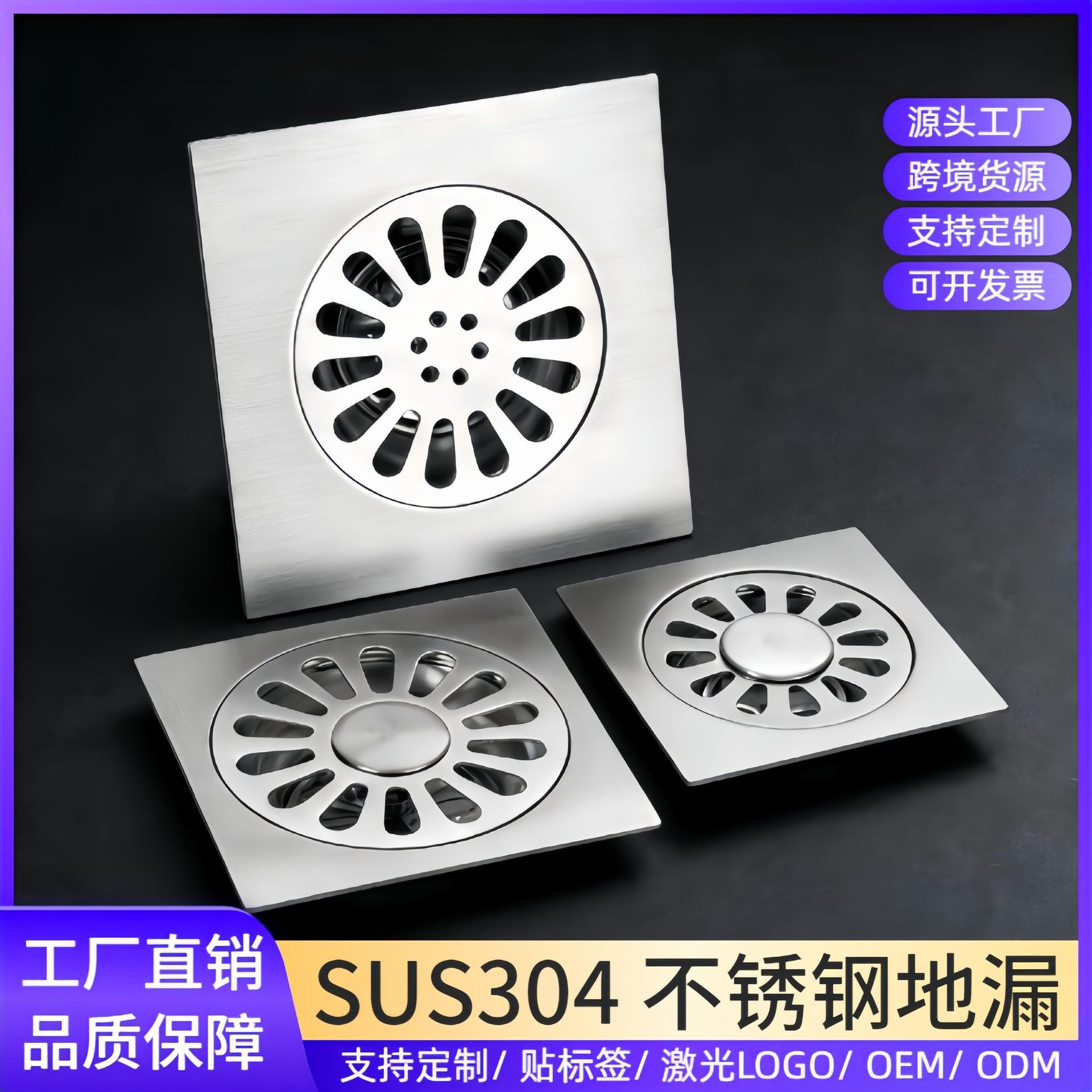 304不锈钢地漏 防臭芯浴室洗衣机加厚大排量酒店工程专供防臭地漏