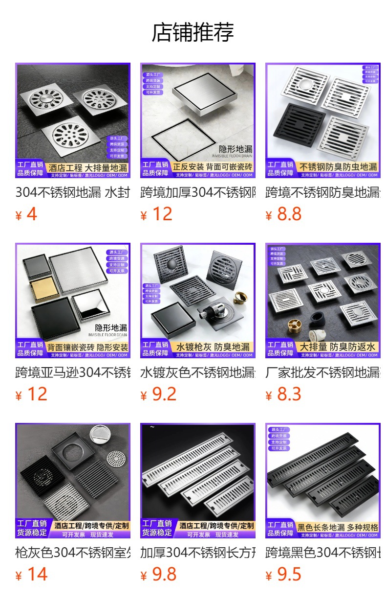 厂家批发不锈钢地漏亮光卫生间双用淋浴室厕所下水道防虫防臭地漏