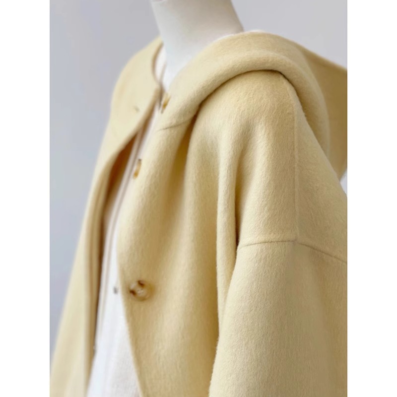 キャンディー色の黄色の帽子の毛はコートの女性の秋冬の毛はコートの高級感のデザイン感があります。
