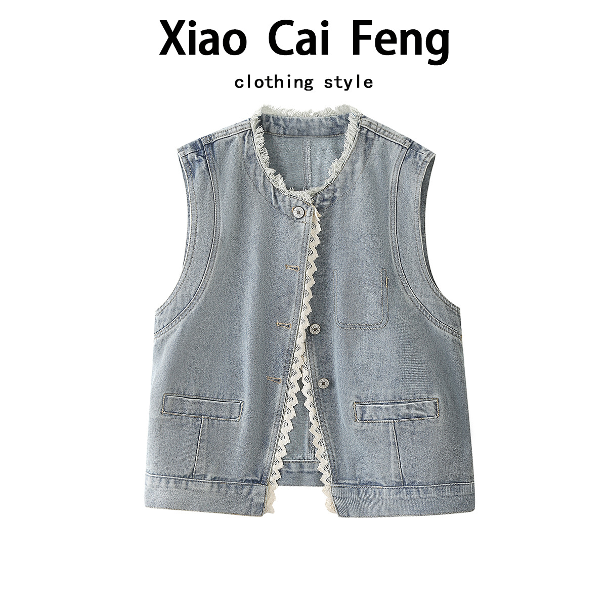 韓国レースデニムベストジャケットレディースデザインニッチアウターレイヤードノースリーブベストベストトップ