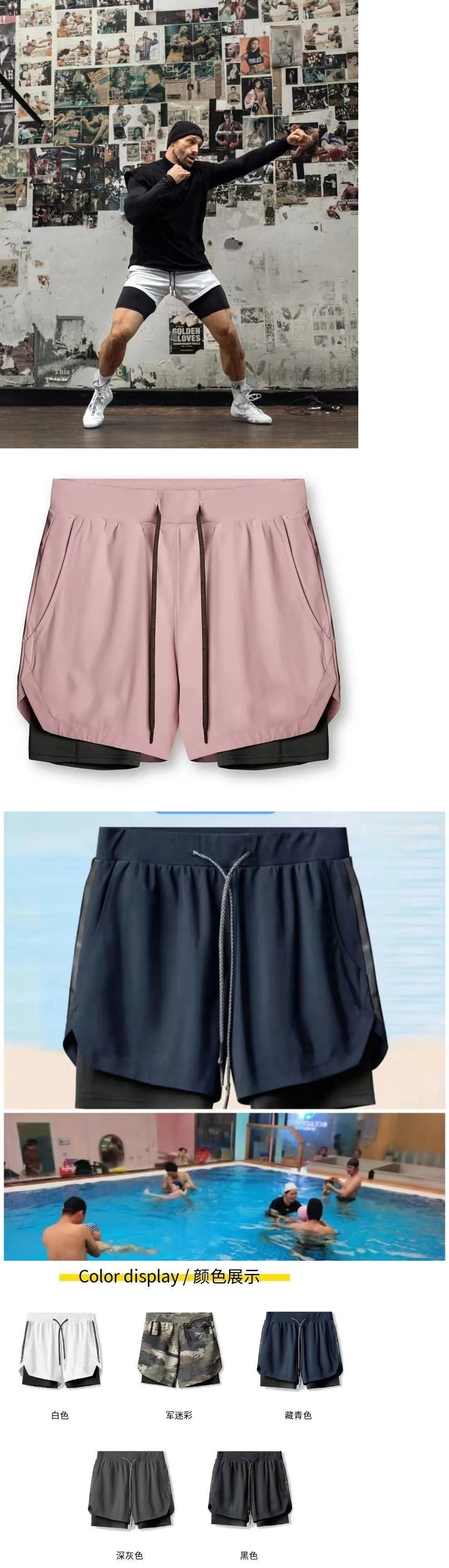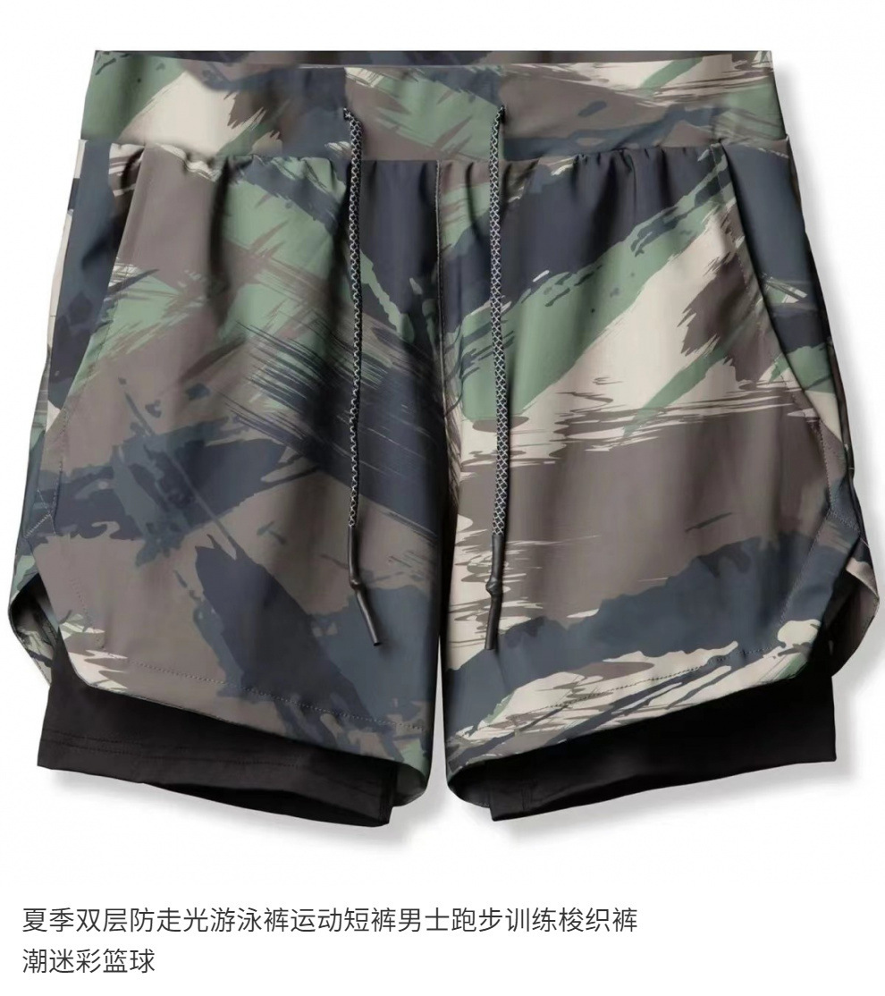 2層半ズボン男性防光水泳パンツ運動半ズボンランニングトレーニングパンツ潮迷彩バスケットボールパンツ