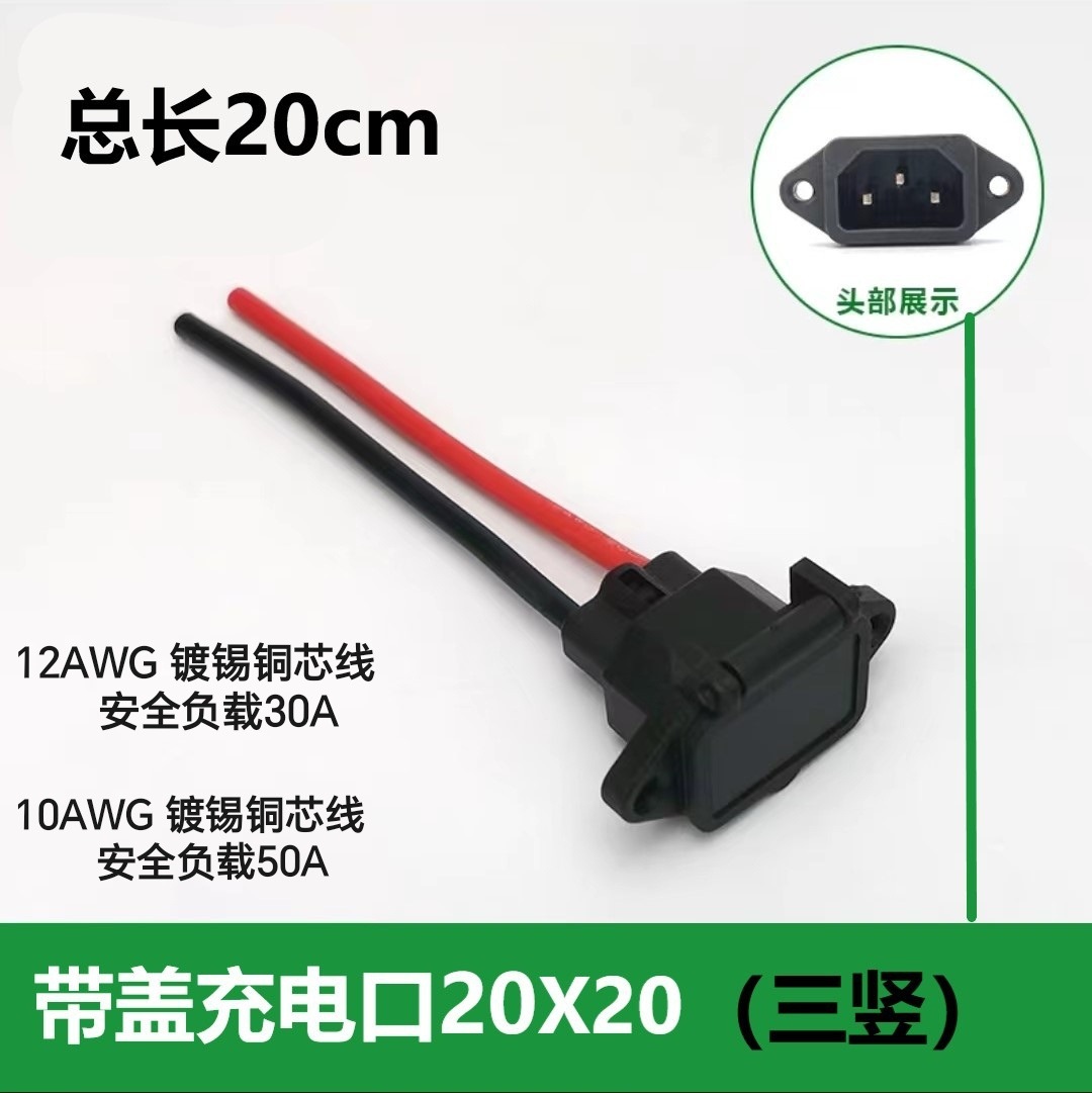 リチウム電池充電口ケーブル付き電気自動車品字充電コンセント電池ケース充電口ac電源品字コンセント
